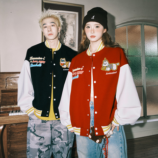 悟空有货潮牌毛巾绣字母棒球服外套男女春季 复古宽松潮流情侣夹克