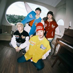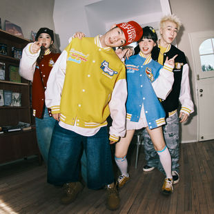 亿万少年BUFU徽章拼接撞色棒球服外套男女春秋国潮牌美式 宽松夹克