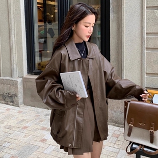 小个子美拉德机车夹克短款 复古棕色皮衣外套女早春秋2025新款 爆款