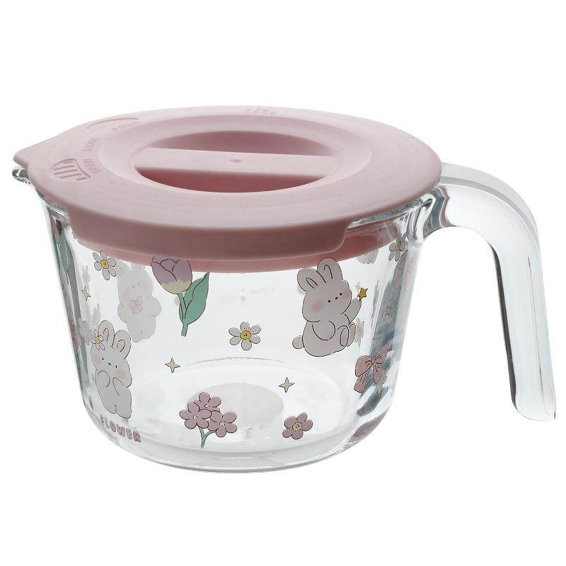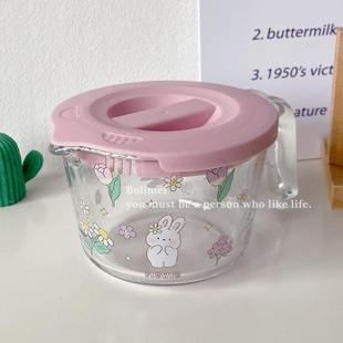 直销新款 蝴蝶结兔子高硼硅玻璃量杯少女心玻璃量杯烘焙大容量带盖