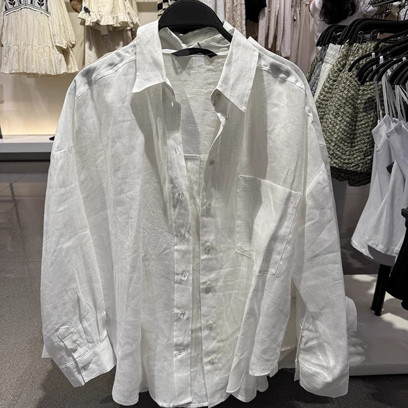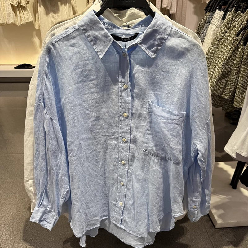 新品 8372058 女装 翻领衬衫 711 通勤百搭亚麻宽松简约长袖 2025春季