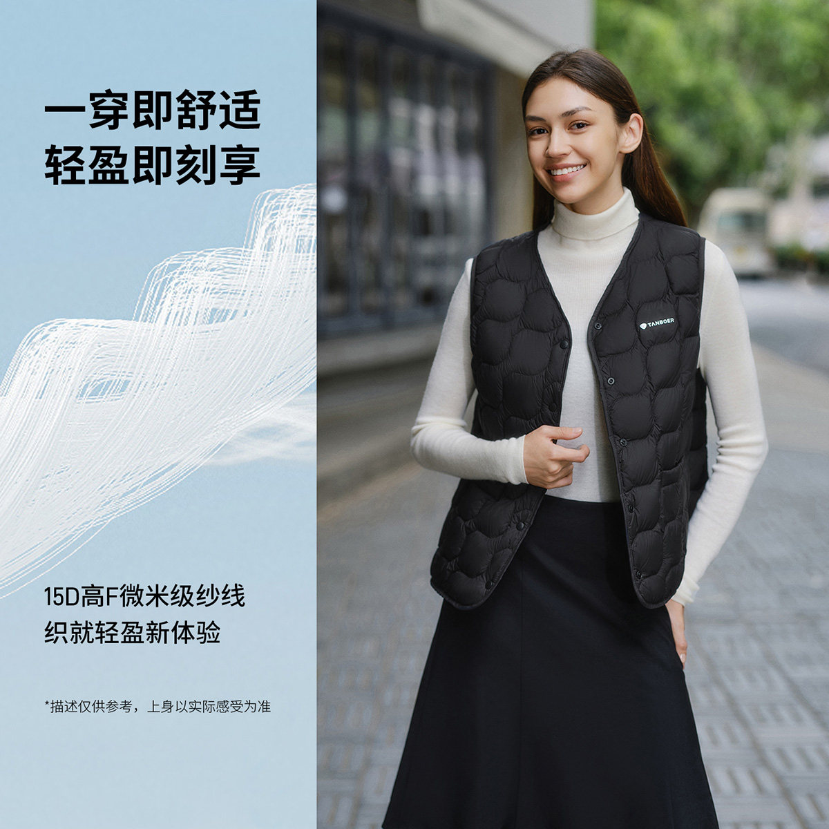 内胆A V领内穿保暖百搭便携秋冬季 坦博尔羽绒马甲女短款 2025年新款