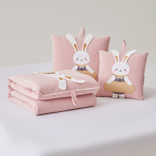 卡通纯棉色织抱枕被子两用车载午睡靠垫幼儿园手拎午休全棉空调被