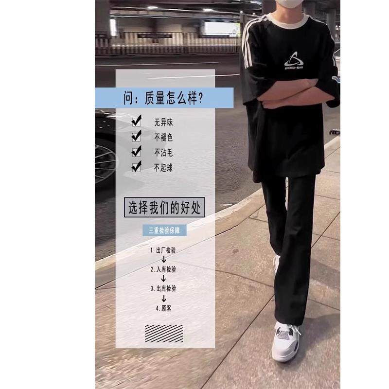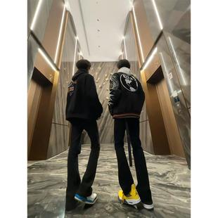男潮流休闲ins微喇牛仔裤 高街国潮黑色弯刀裤 百搭长裤 新款 子夏季