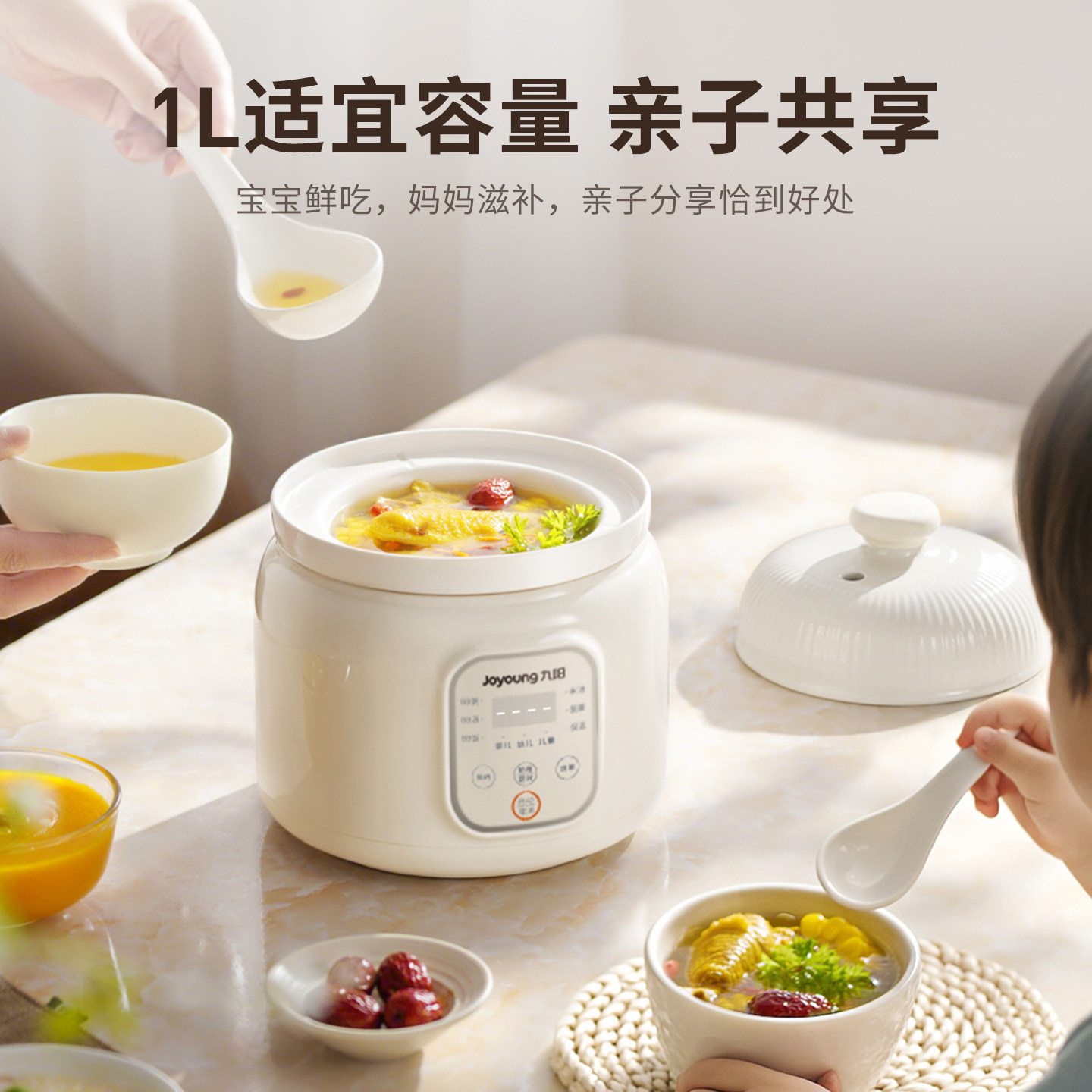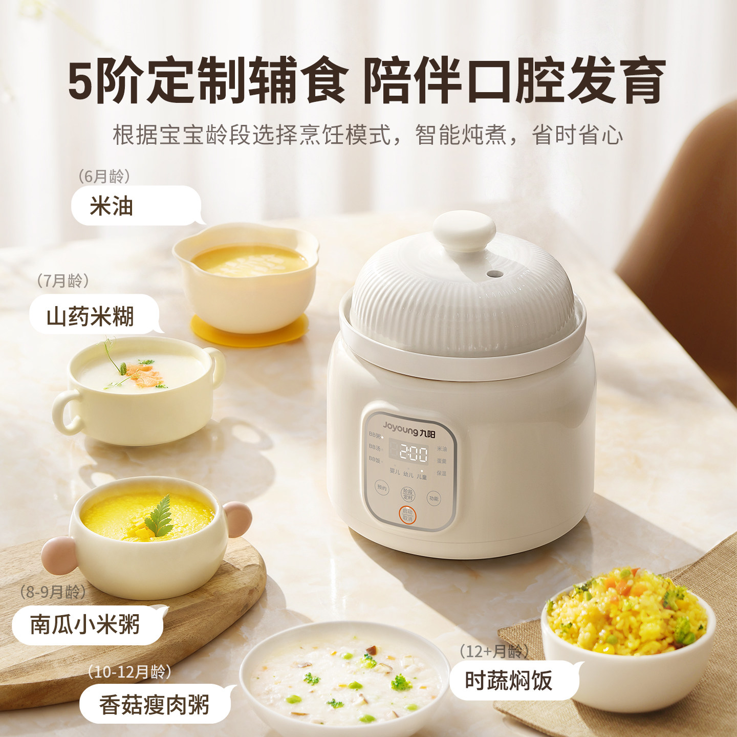 九阳婴儿辅食锅分月龄BB煲粥饭锅宝宝专用辅食米油1L迷你电炖锅