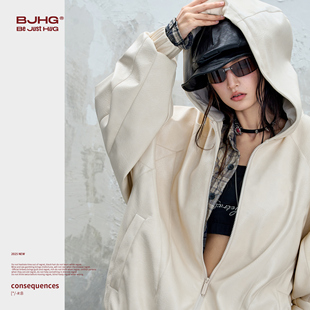 高级感酷飒风机车服翻领皮夹克 秋季 小C家 白色皮衣外套女2025新款