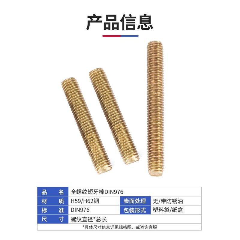 SZ黄铜全螺纹短牙棒DIN976通丝杆牙条双头螺柱M2.5M3M4 M20 M8M10