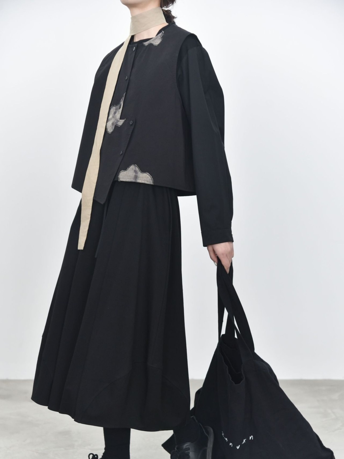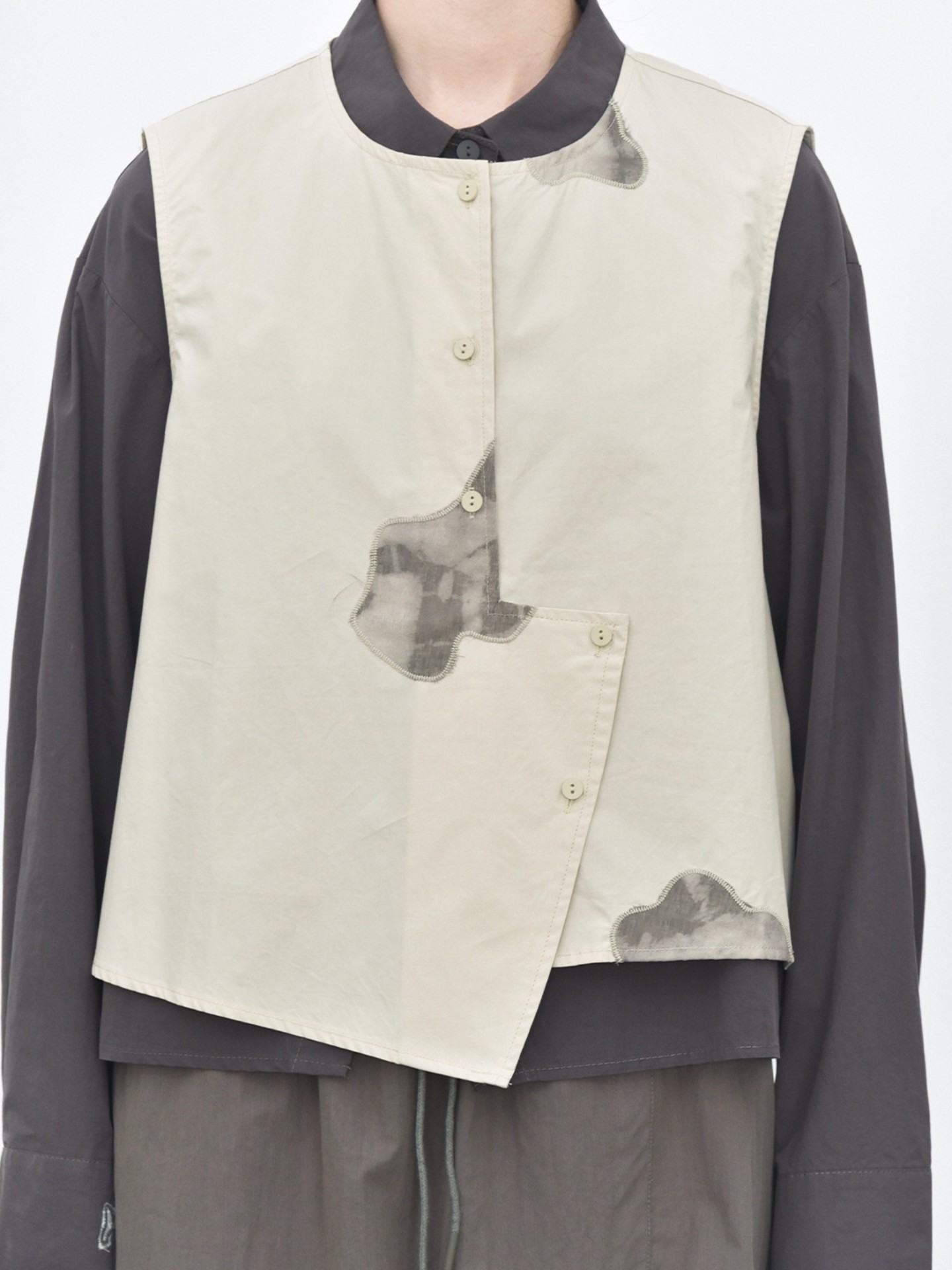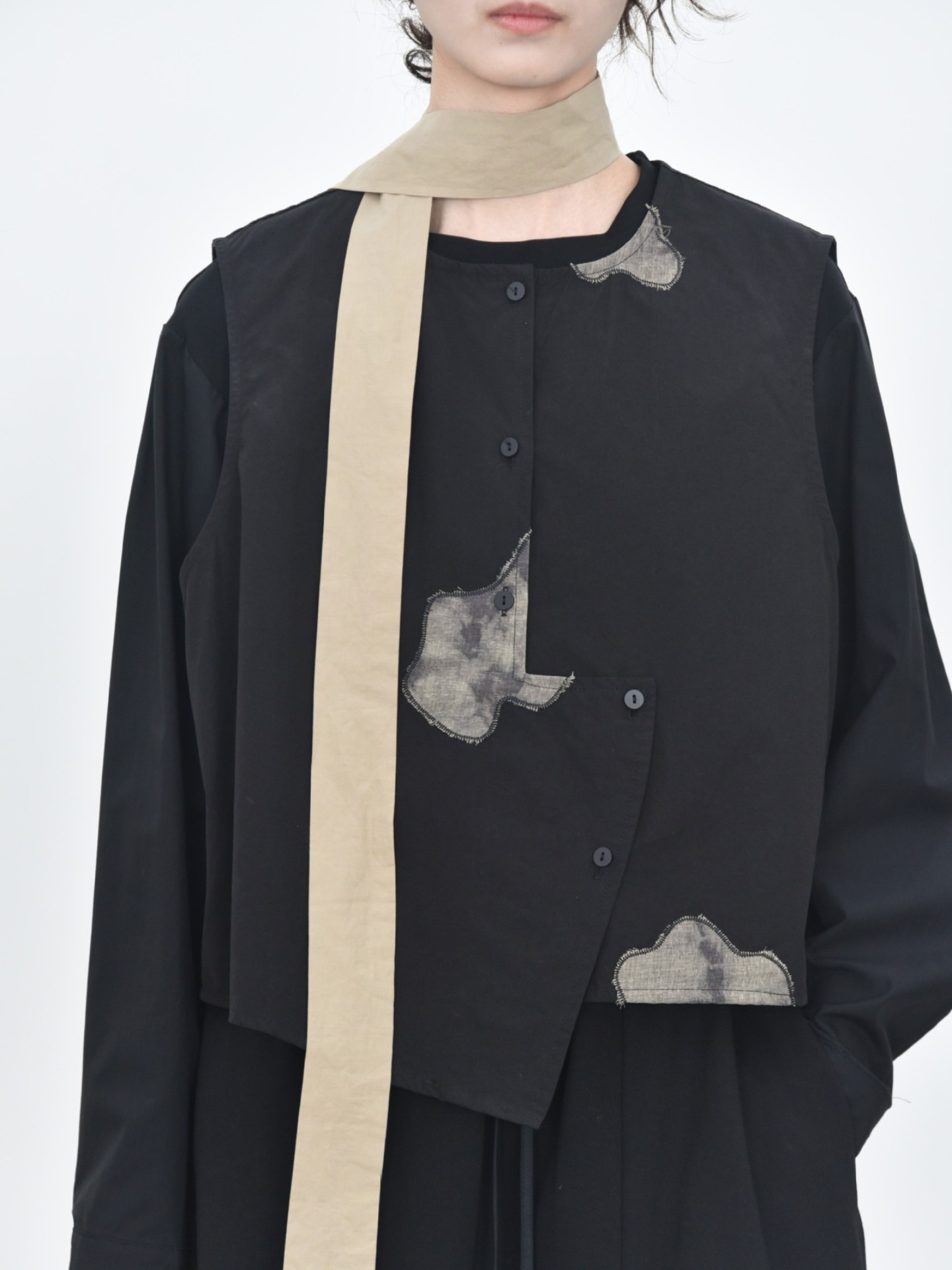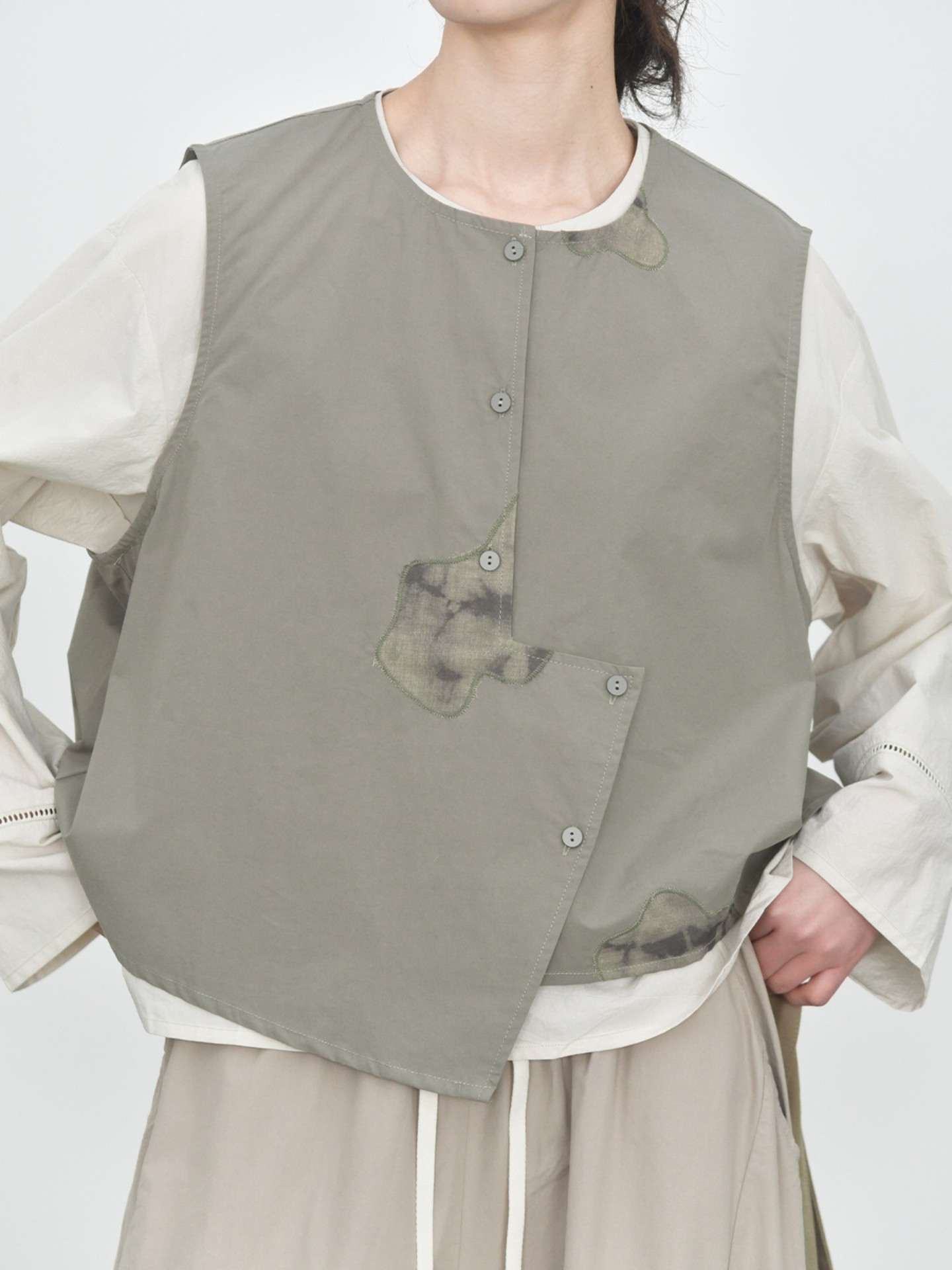 童颜阁秋季 扎染贴布拼贴马甲小众设计叠穿复古圆领马夹外套女 个性
