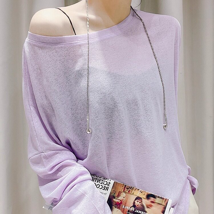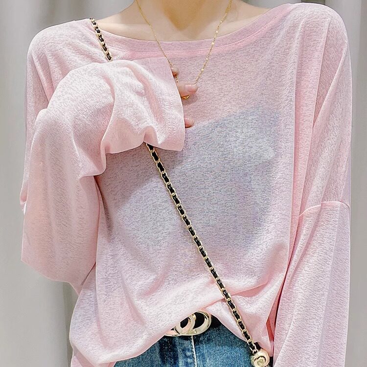 上衣冰丝外搭微透罩衫 网纱t恤女宽松薄款 胖mm200斤长袖 大码 潮 夏季