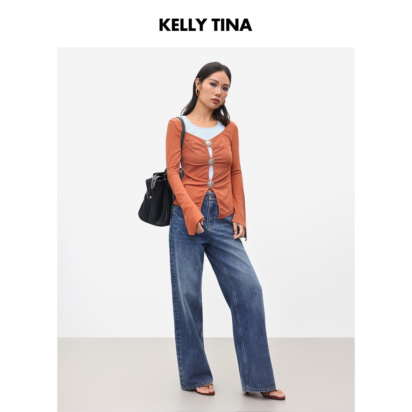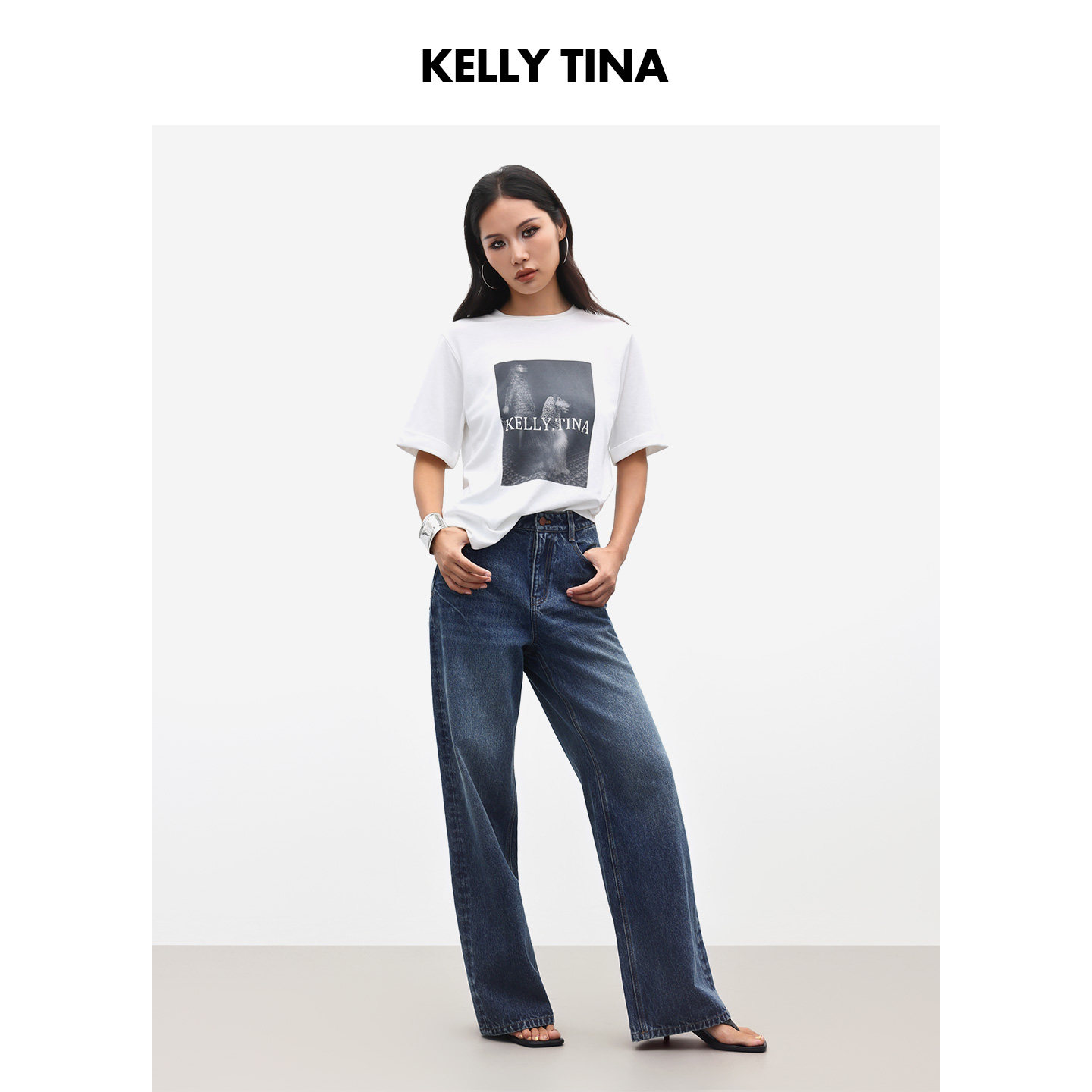 阔腿长裤 女简约百搭直筒裤 TINA时光印记复古廓形水洗牛仔裤 KELLY