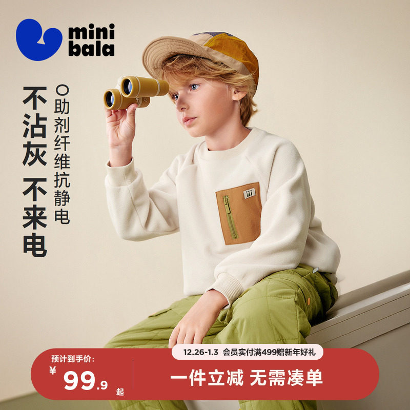 户外儿童抗静电长袖 迷你巴拉巴拉男女童卫衣2025冬新品 净电绒