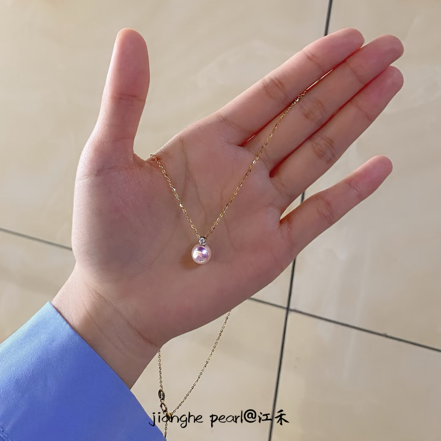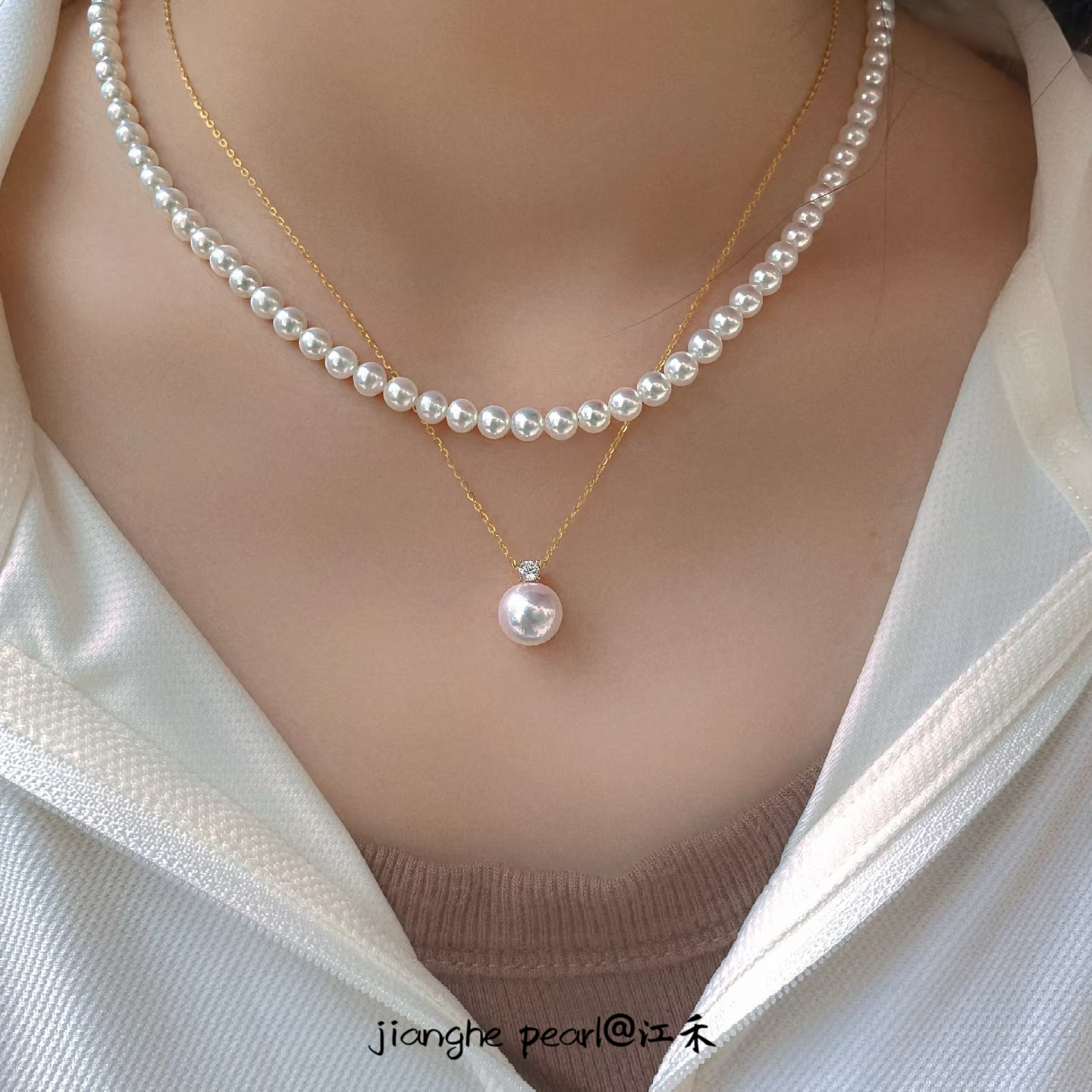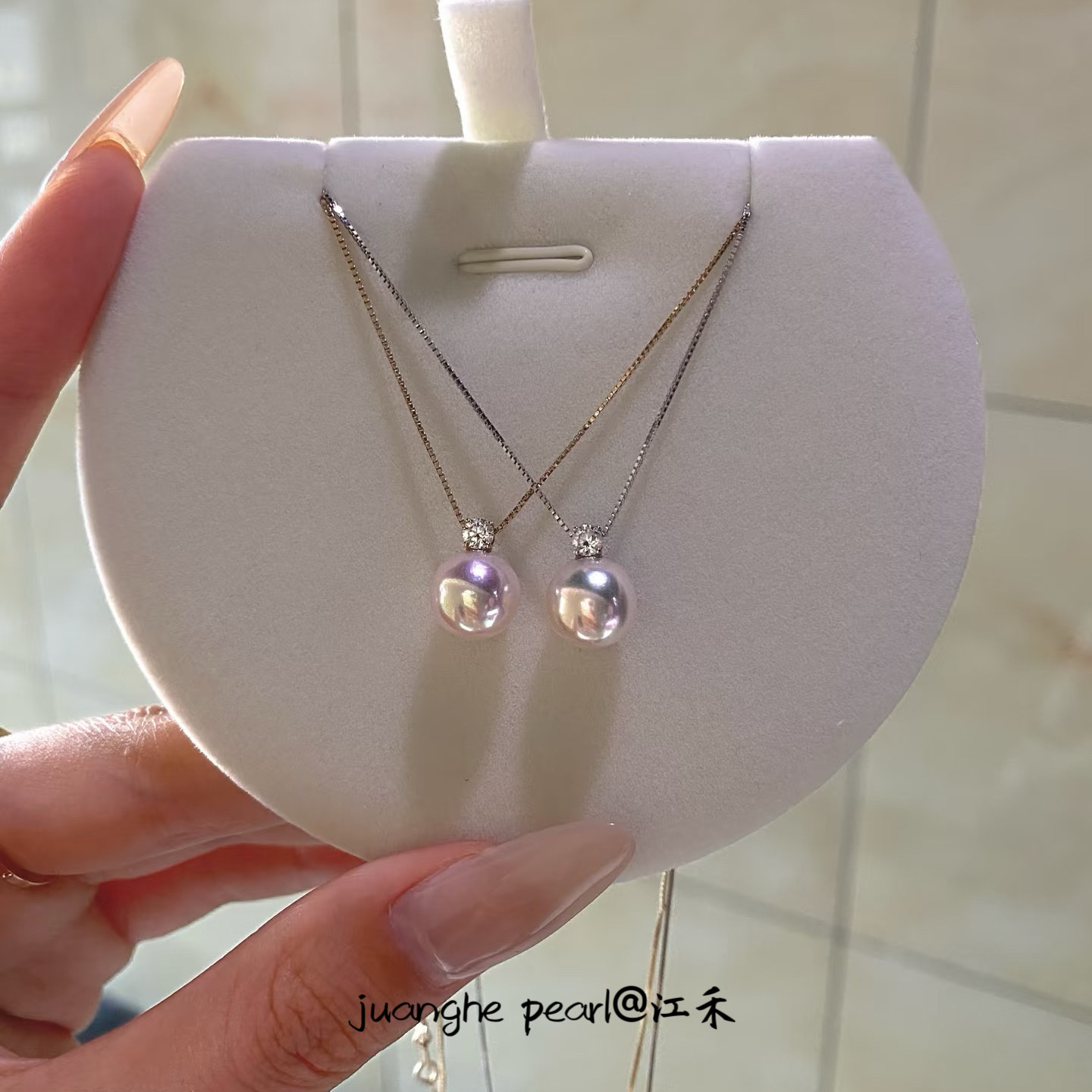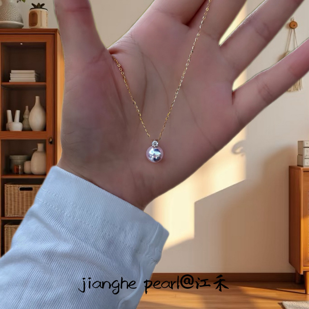 Akoya天然海水珍珠吊坠18k金钻石王妃锁骨链极强光正圆轻奢项链女