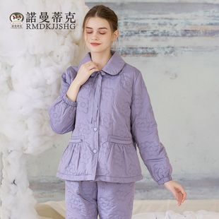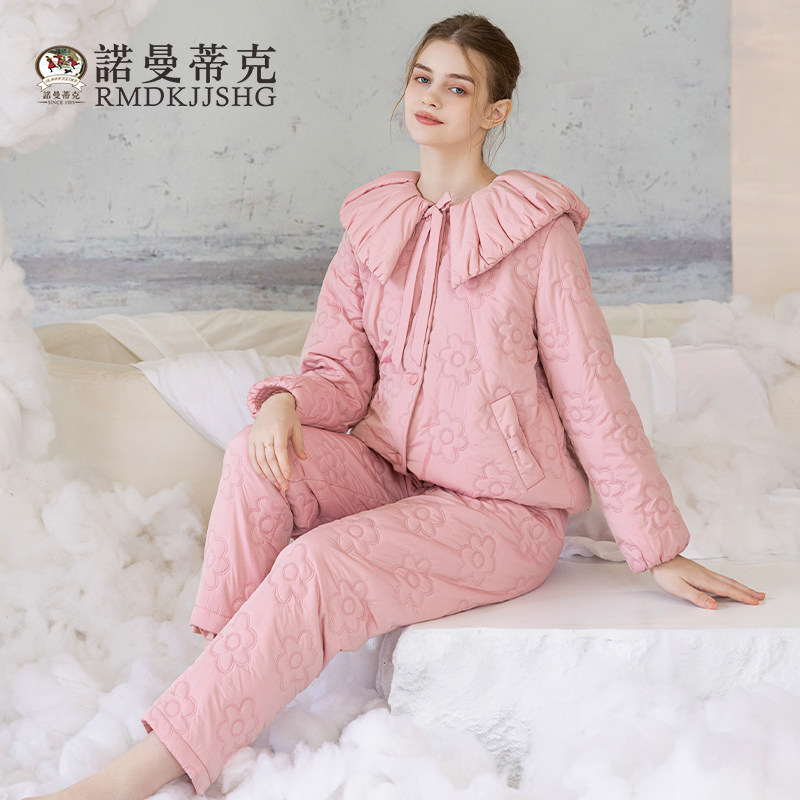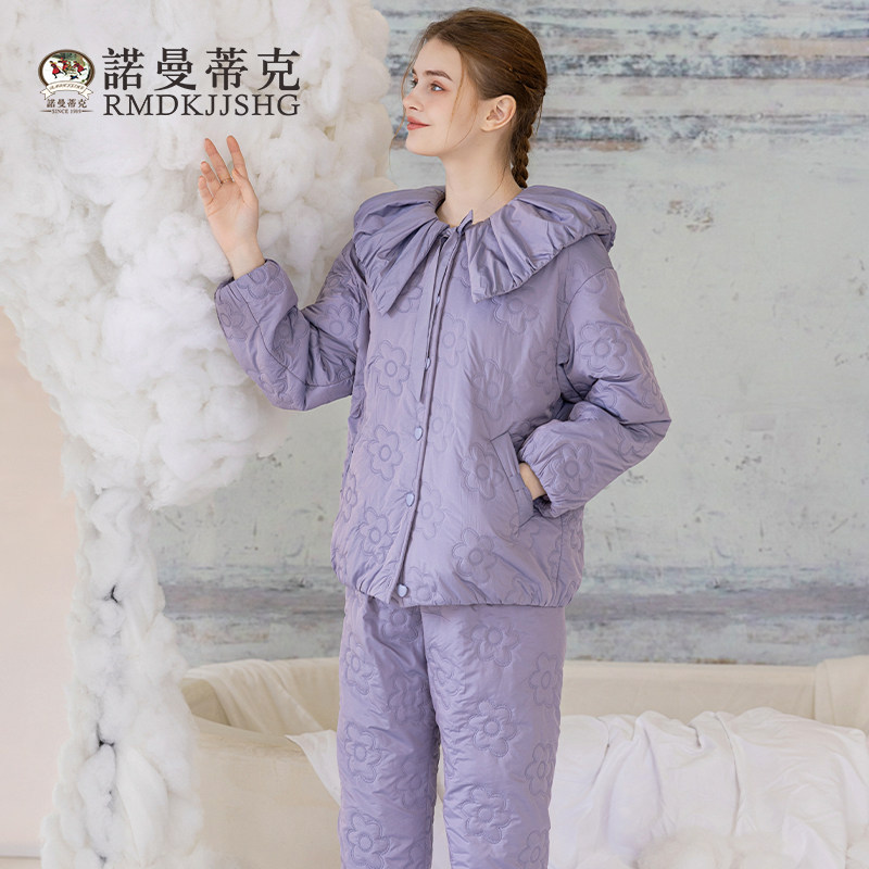 曼诺曼蒂克睡衣女秋冬新款 可外穿 轻羽绒女翻领睡袍简约家居服套装