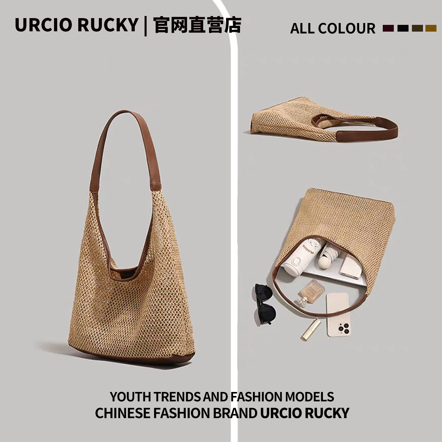 URCIO 海边度假编织托特包 RUCKY品牌夏天大容量草编包女2025新款