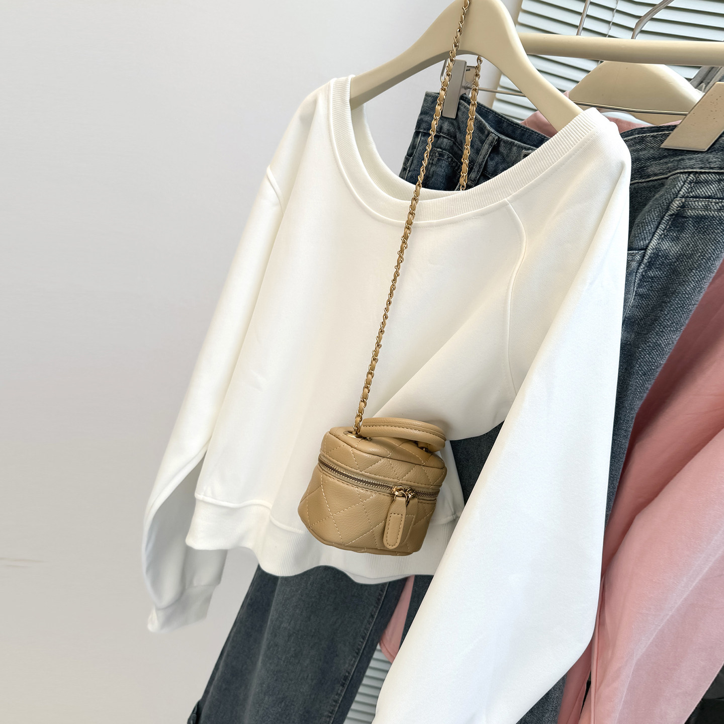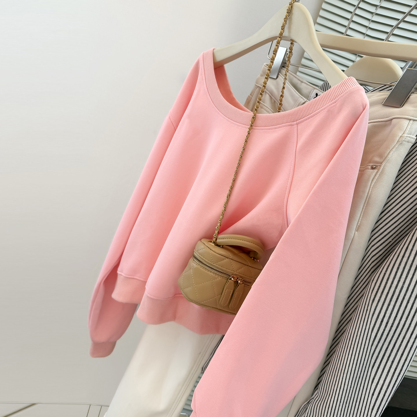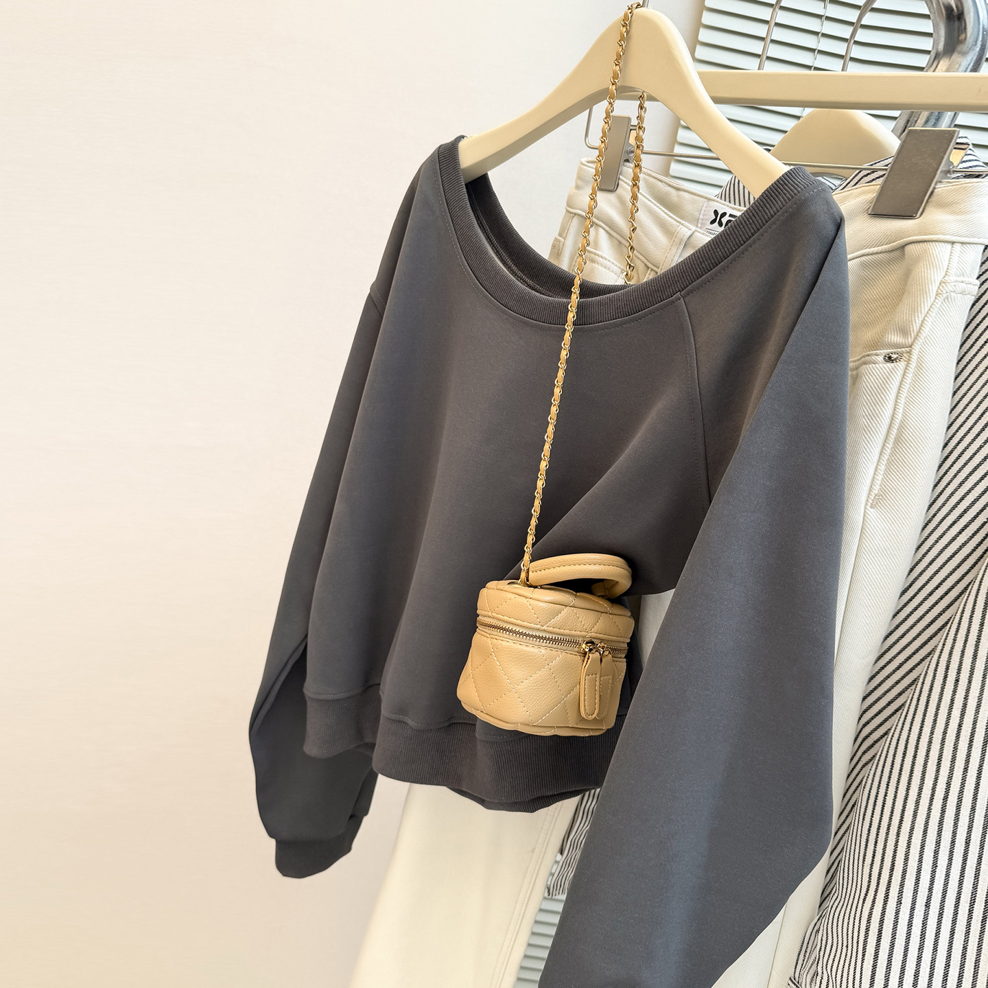 宽松上衣外套ins潮 韩版 纯欲性感一字斜肩露肩长袖 卫衣女春秋薄款