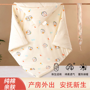 新生儿宝宝纯棉产房包被初生儿带帽外出襁褓巾四季 通用婴儿抱被