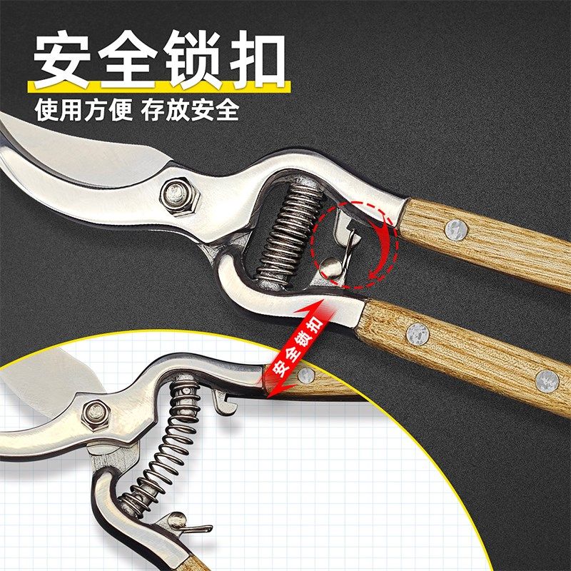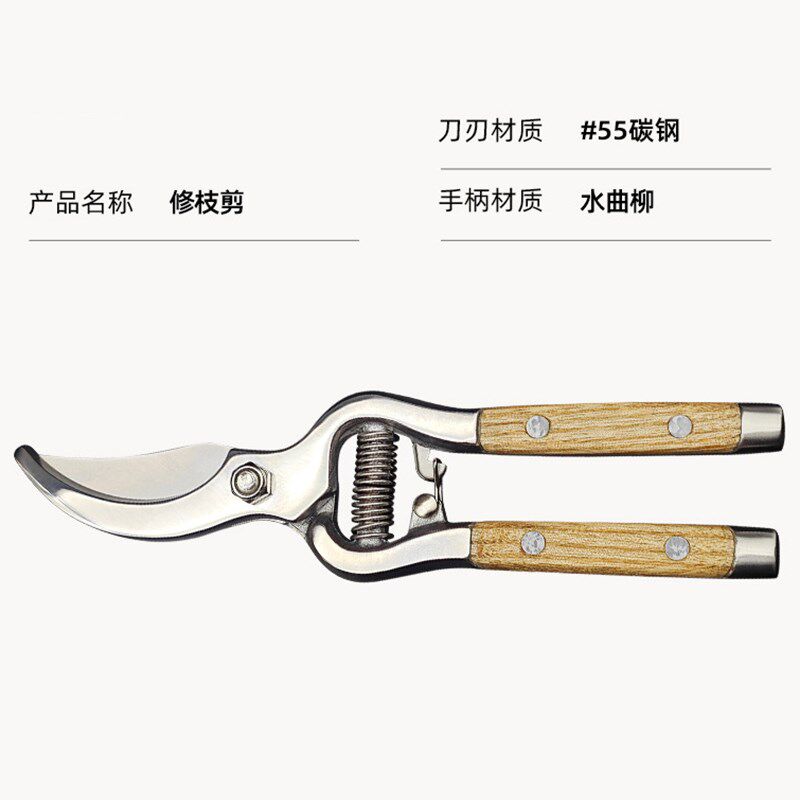 实木柄防滑摘果剪锰钢强力园艺修枝嫁接花艺剪枝去刺园林剪子直销