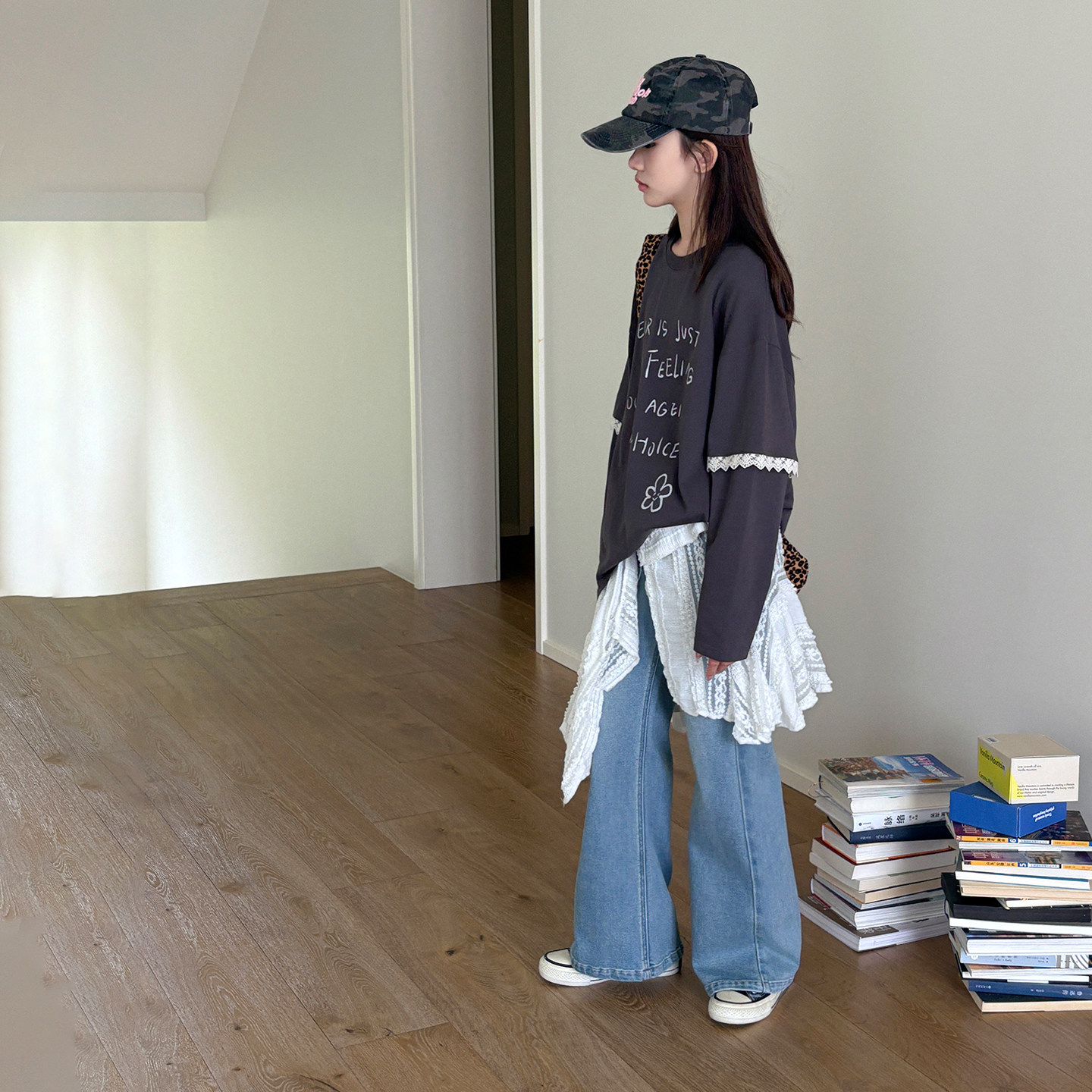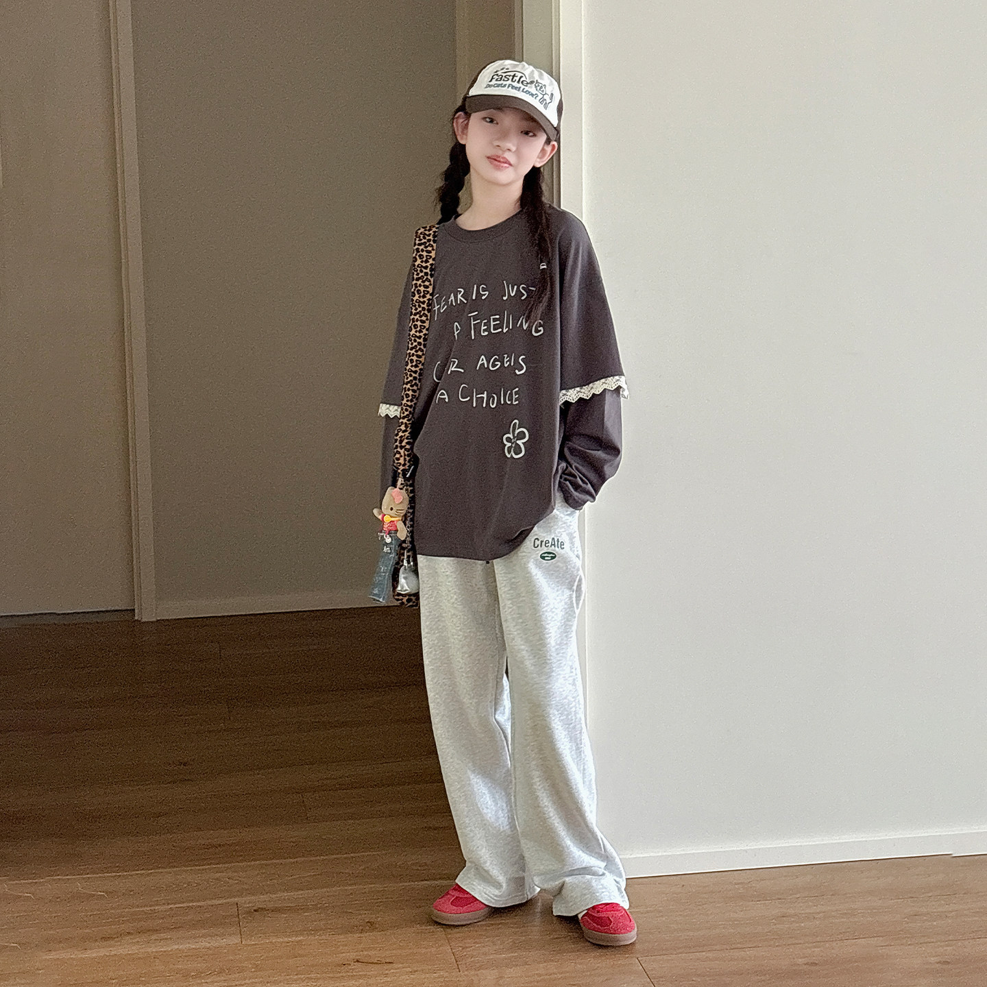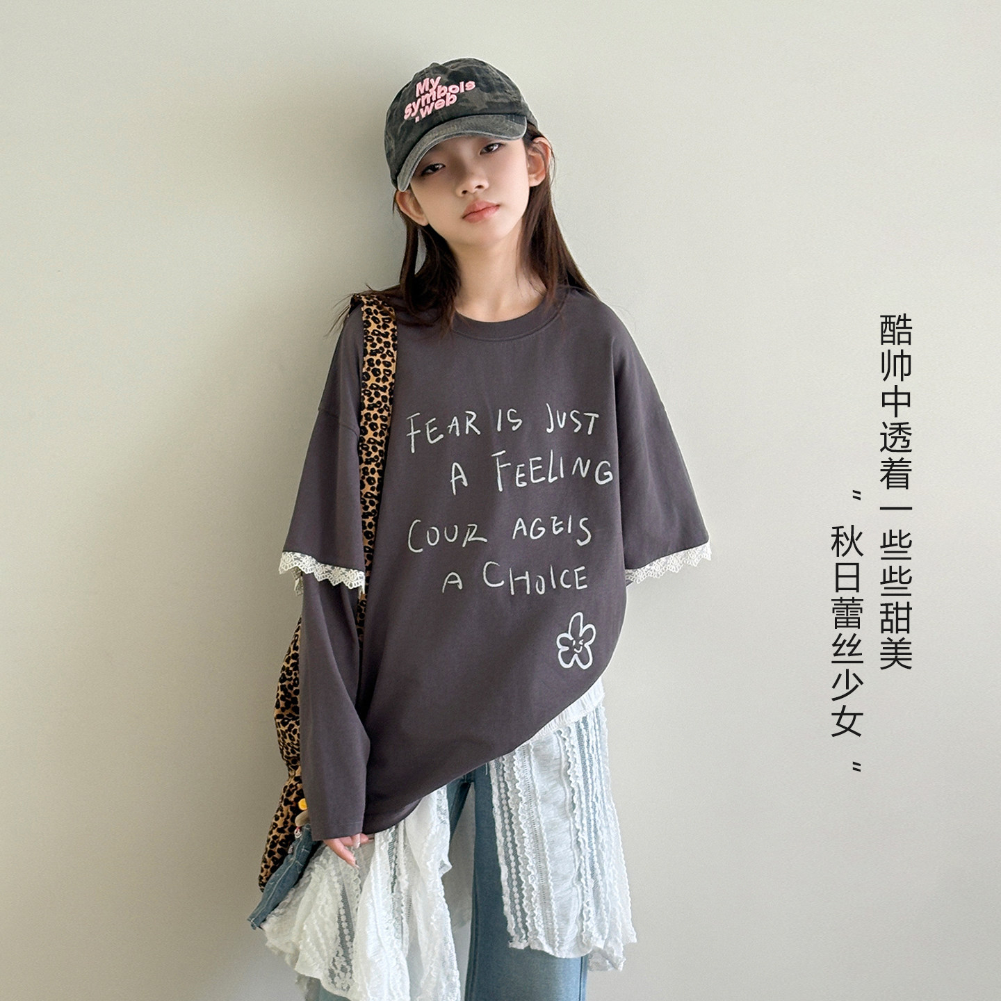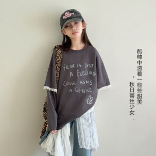 休闲假两件长袖 女大童T恤 新款 青少年2026春装 上衣潮 蕾丝少女