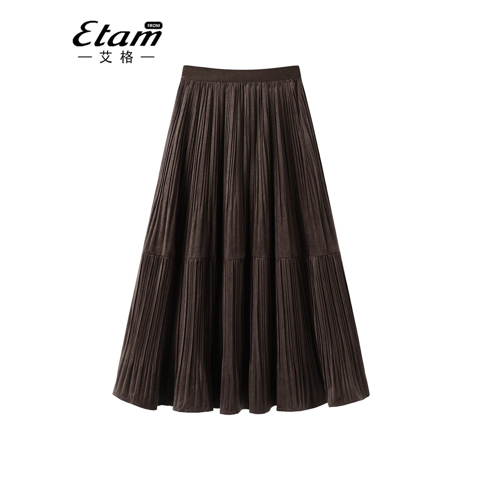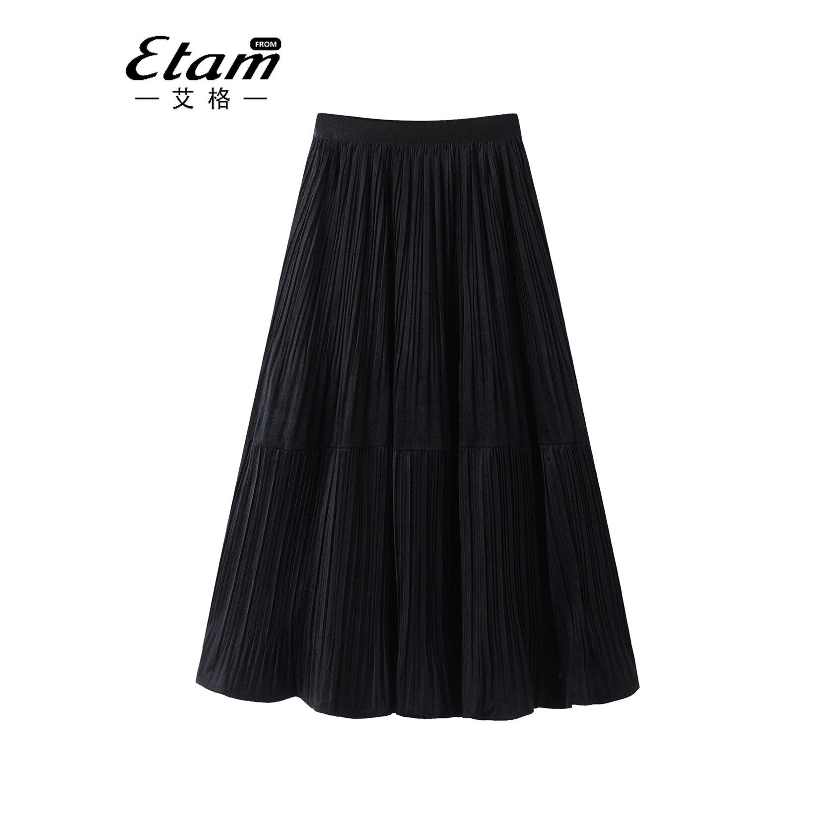a字长裙 百褶半身裙女高腰显瘦小个子中长款 艾格Etam2025秋季 新款