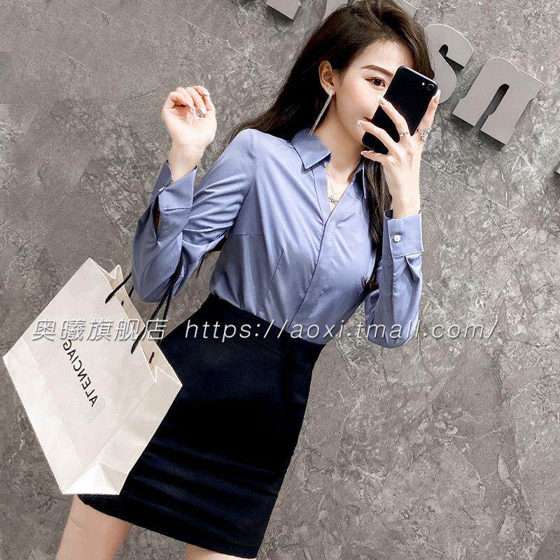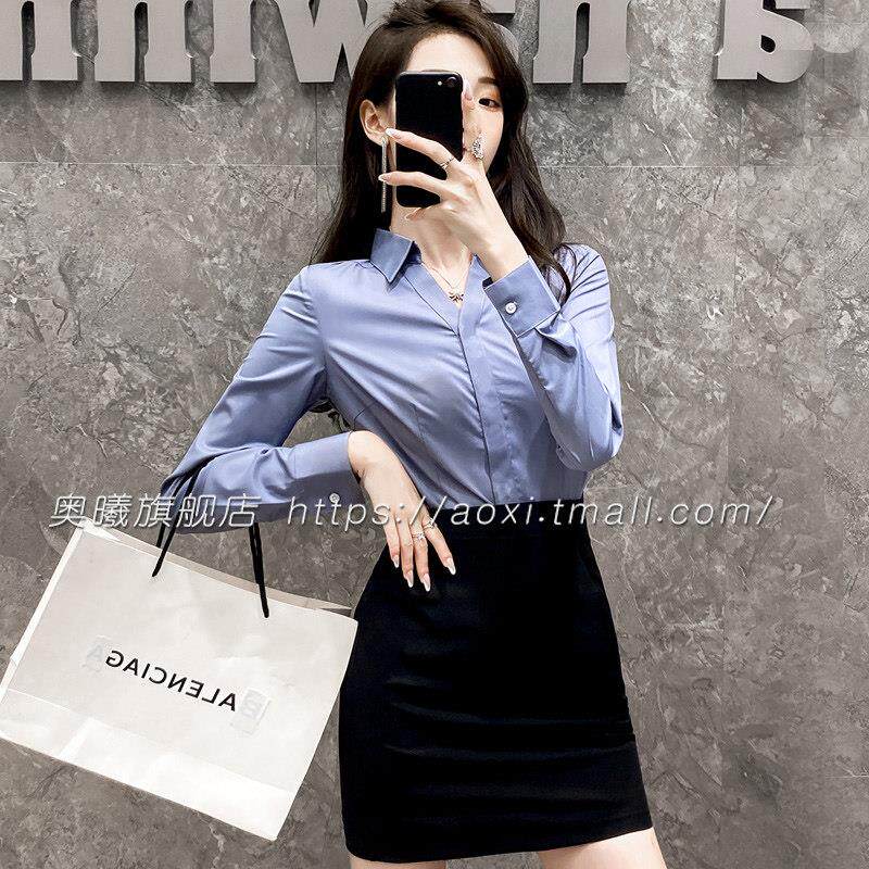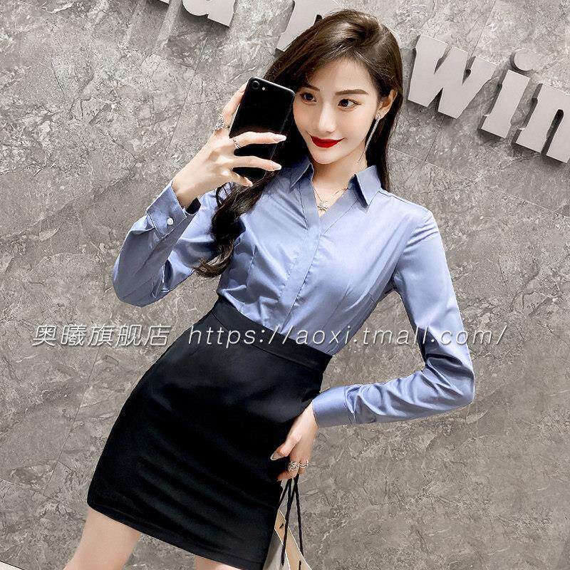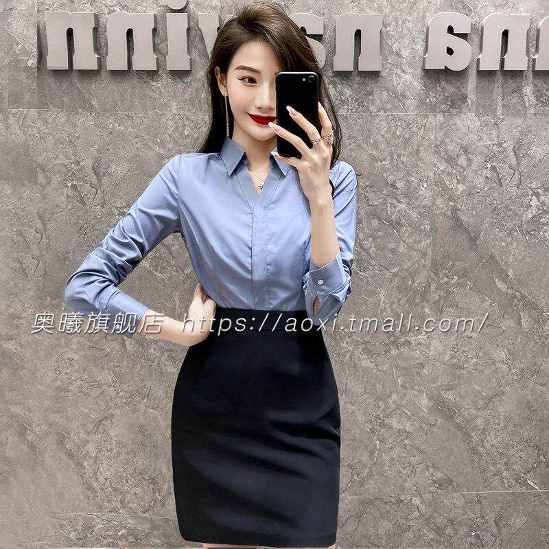 女前台工作装 OL服装 空姐职业制服衬衣女秋款 女工装 灰色衬衫 职业装