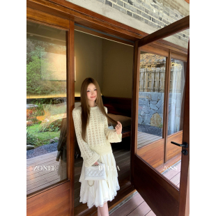 LEA宋亦雯 ZONEE 26新品 气质时髦100棉套头镂空针织上衣女