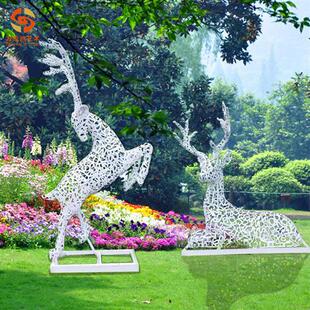 户外仿真不锈钢字母鹿雕塑摆件售楼部商场草坪园林婚庆艺术装 饰