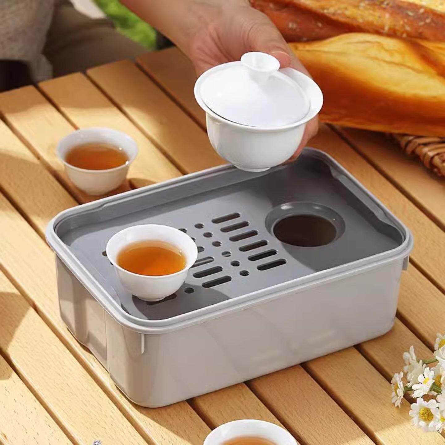 塑料功夫茶具套装 工地茶盘一壶三杯茶旅行茶盘车载茶盘收纳盒