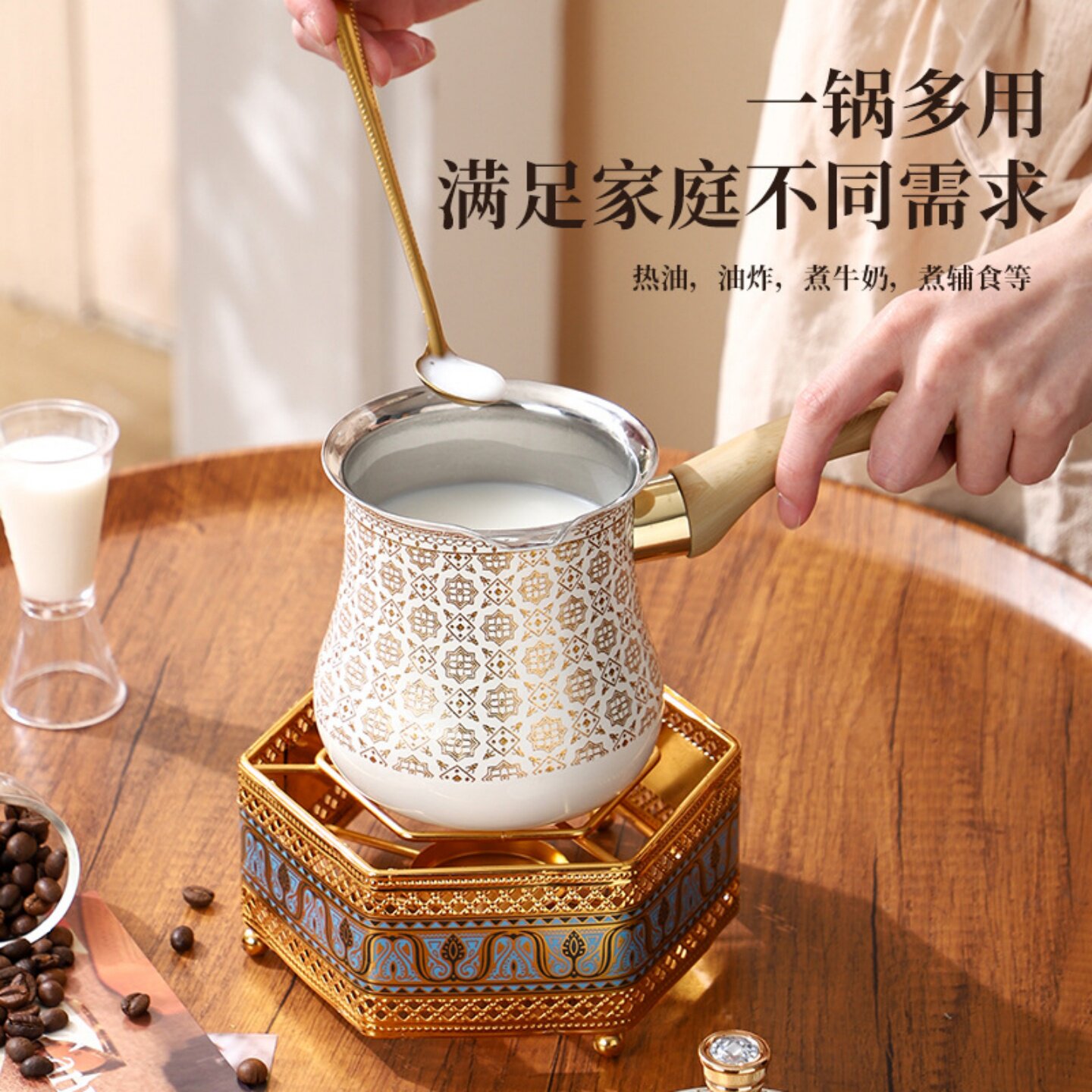 欧式 复古土耳其咖啡壶奶杯不锈钢咖啡壶煮茶煮奶壶带茶漏茶壶套装