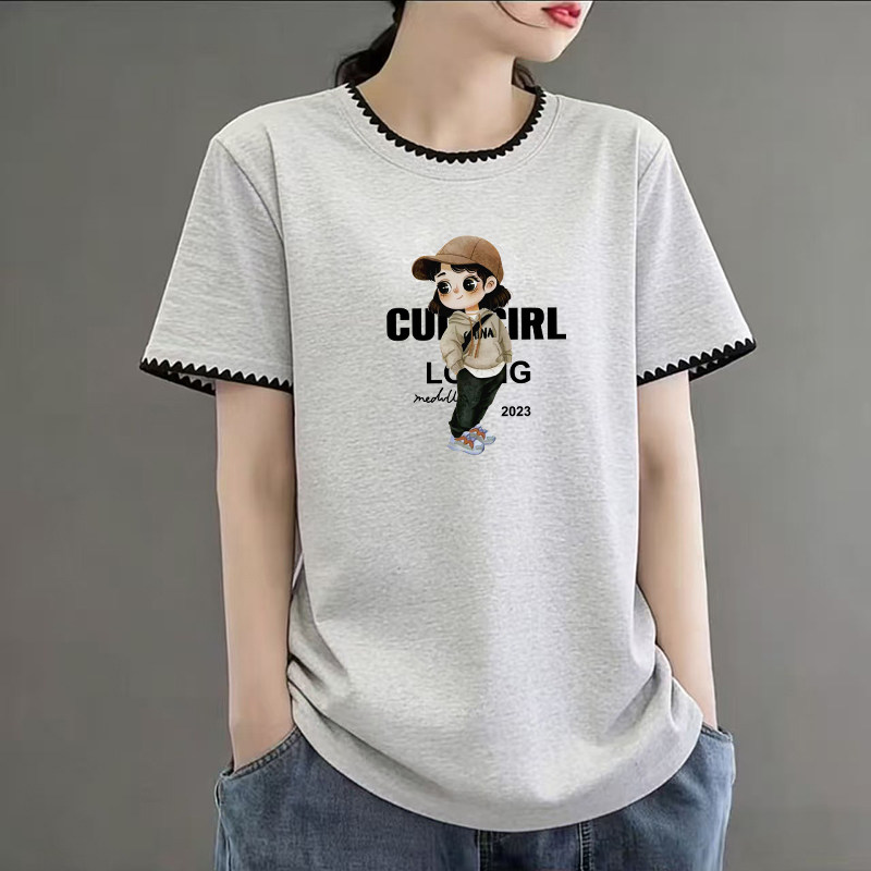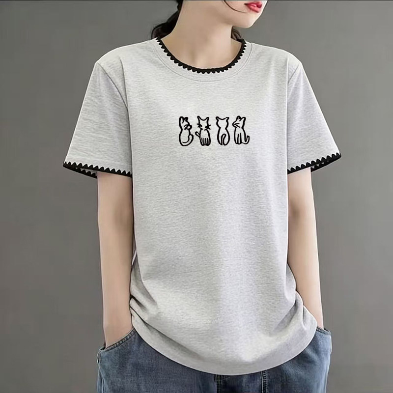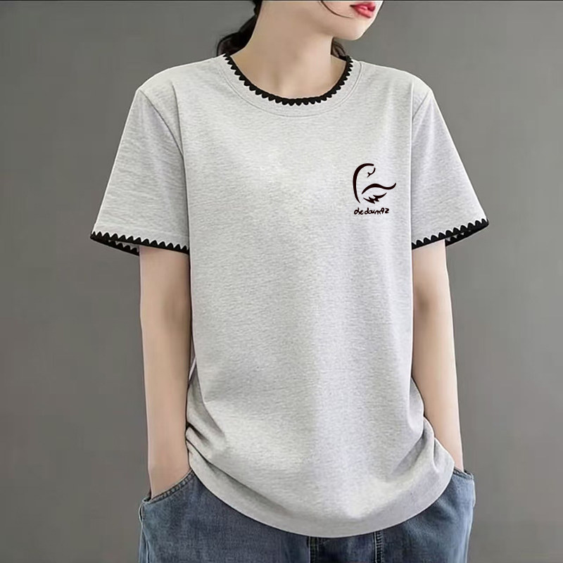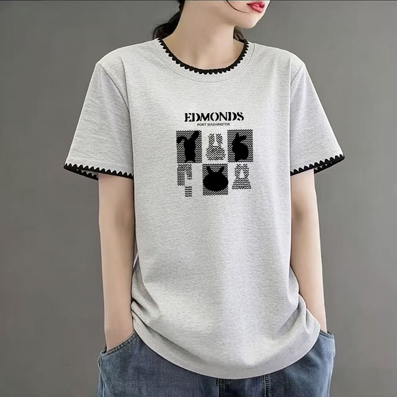 显瘦字母印花体恤小衫 修身 设计感撞色圆领上衣 t恤女夏季 正肩短袖