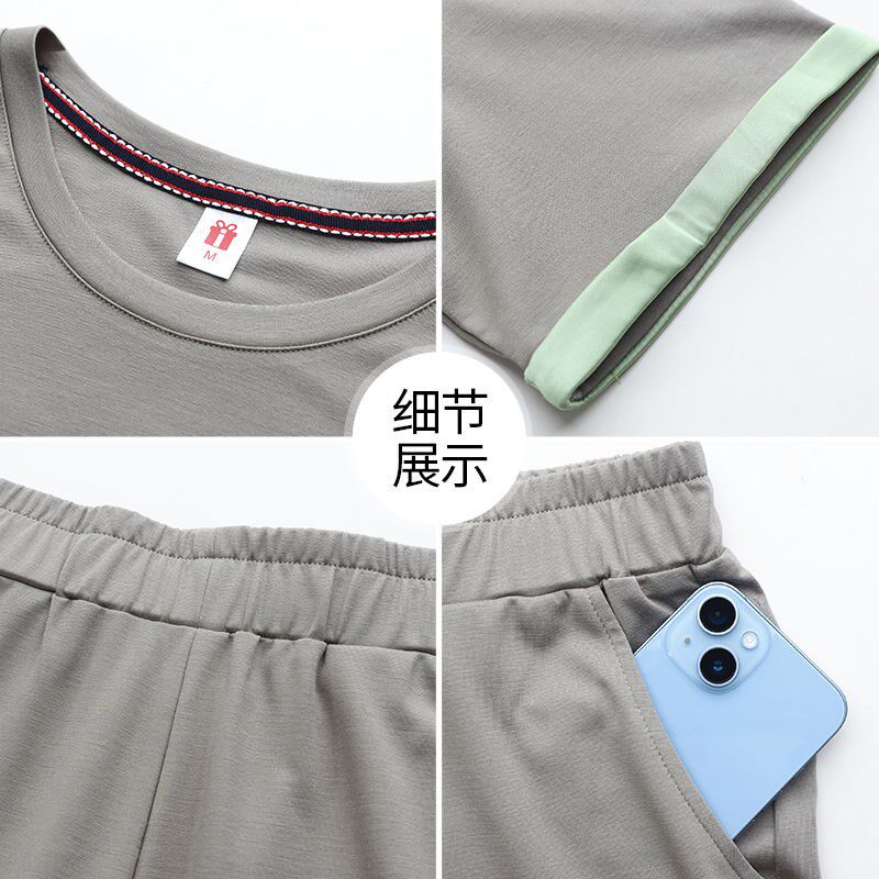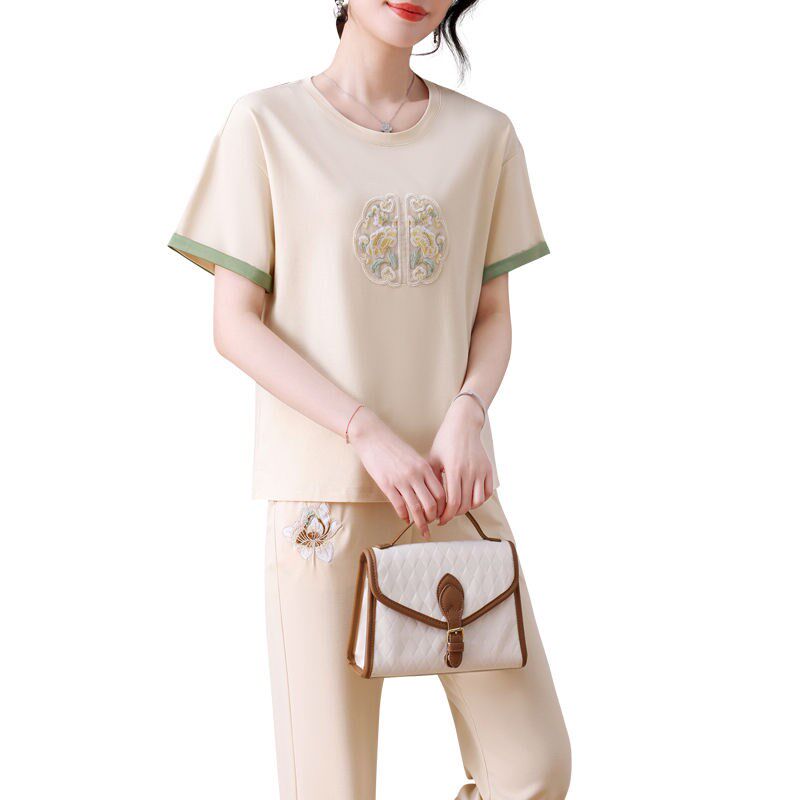 洋气短袖 运动服套装 国风时尚 妈妈新中式 T恤冰丝休闲两件套 女夏装