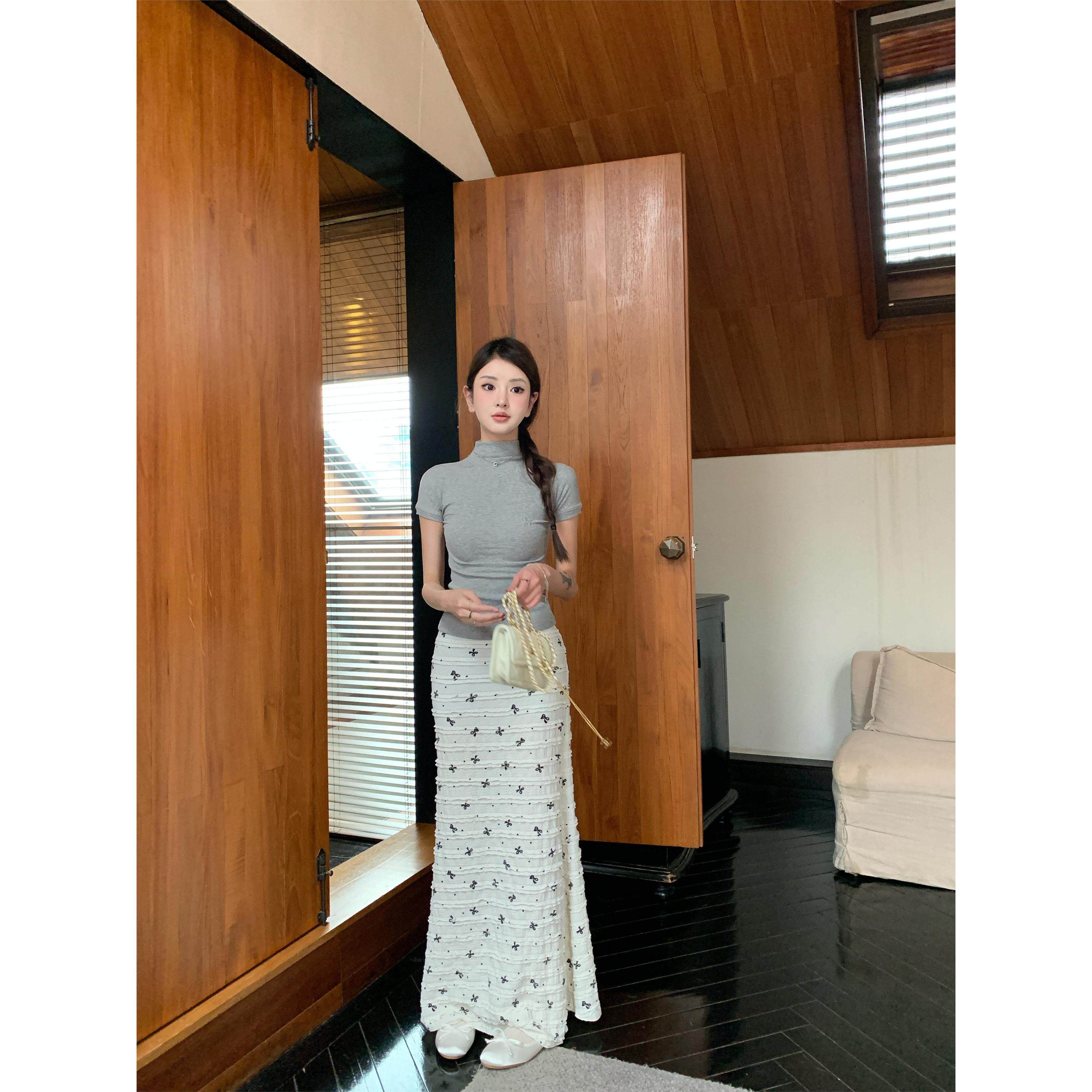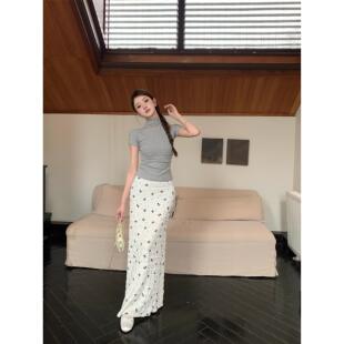1ess mode韩系度假风蝴蝶结印花蕾丝碎花鱼尾半身裙纯欲长裙夏
