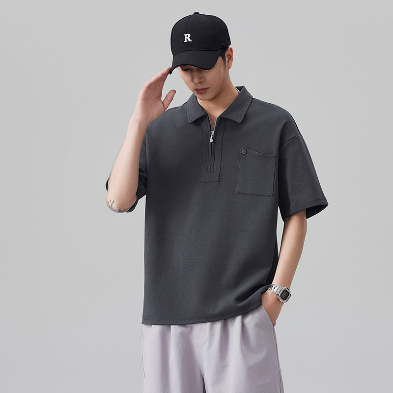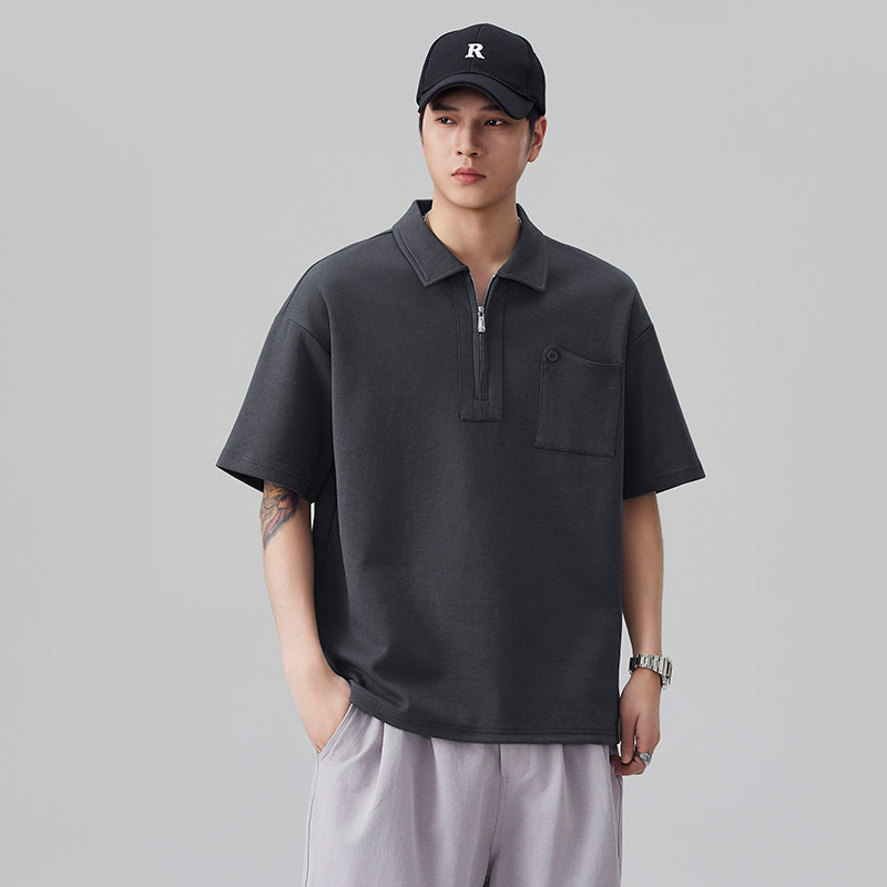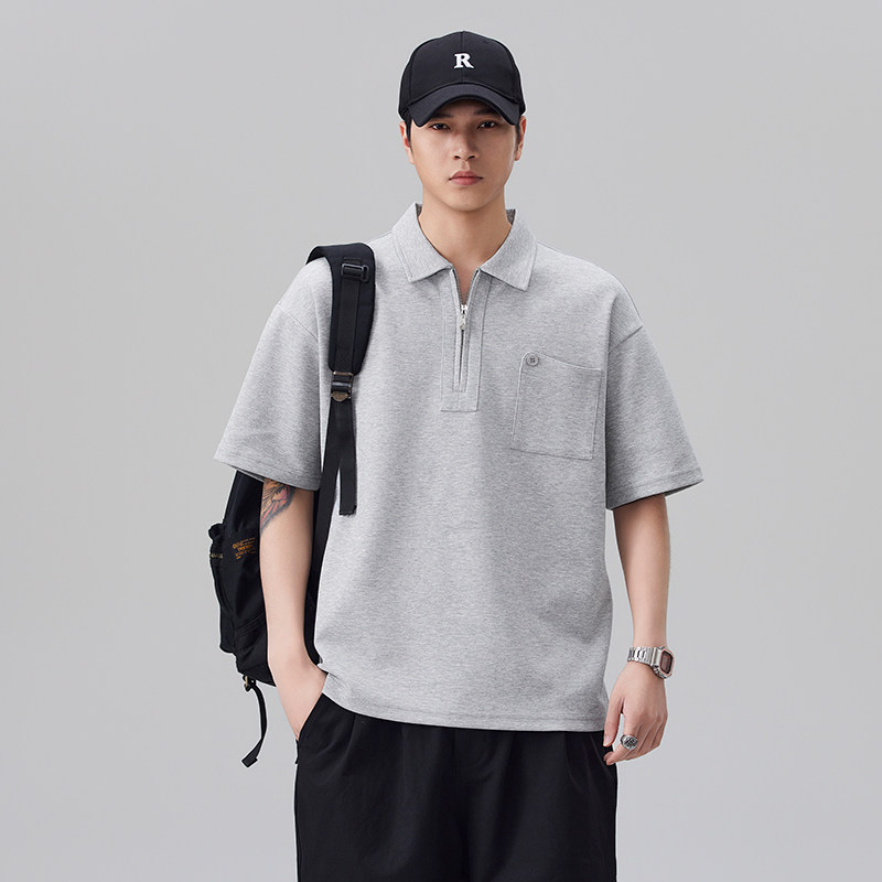 新款 男士 美式 Polo衫 宽松廓形百搭休闲上衣 半拉链短袖 实拍2026夏季