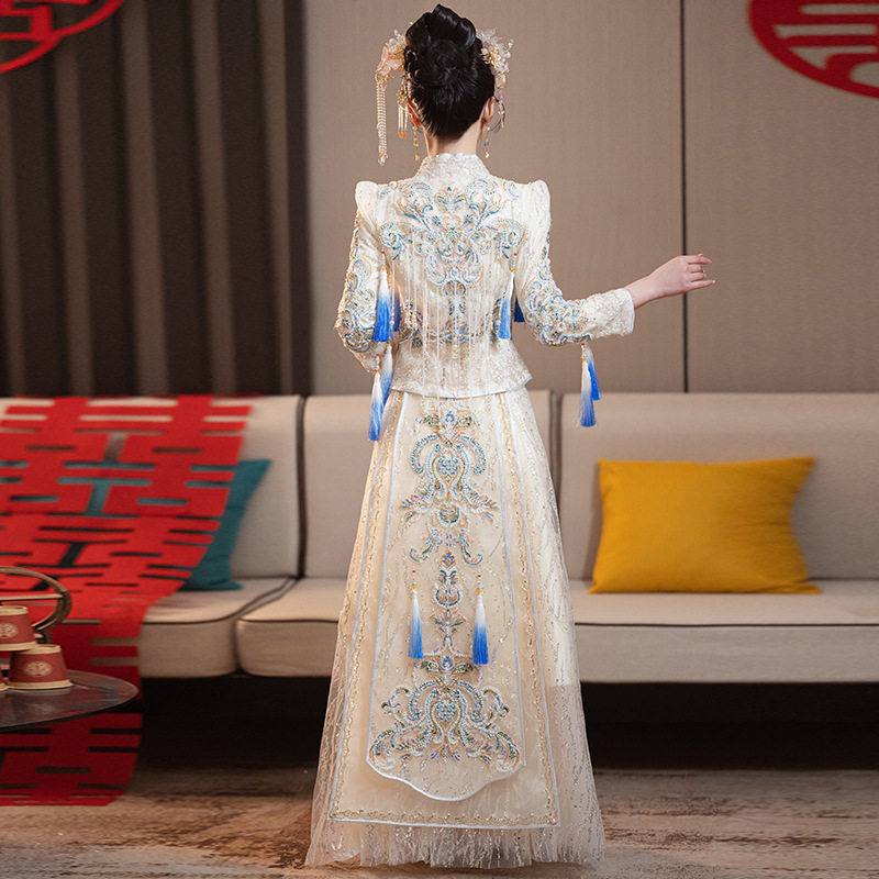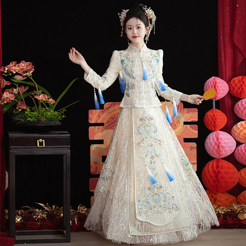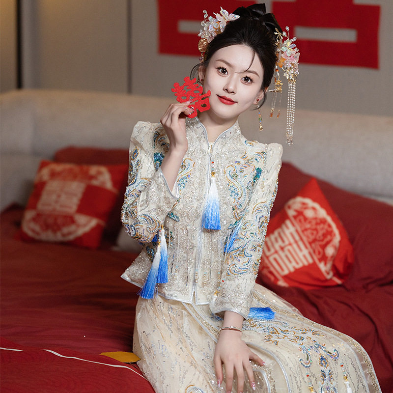 婚服结婚礼服出阁服嫁衣夏季 奢华重工白色秀禾服2026新款 新娘中式