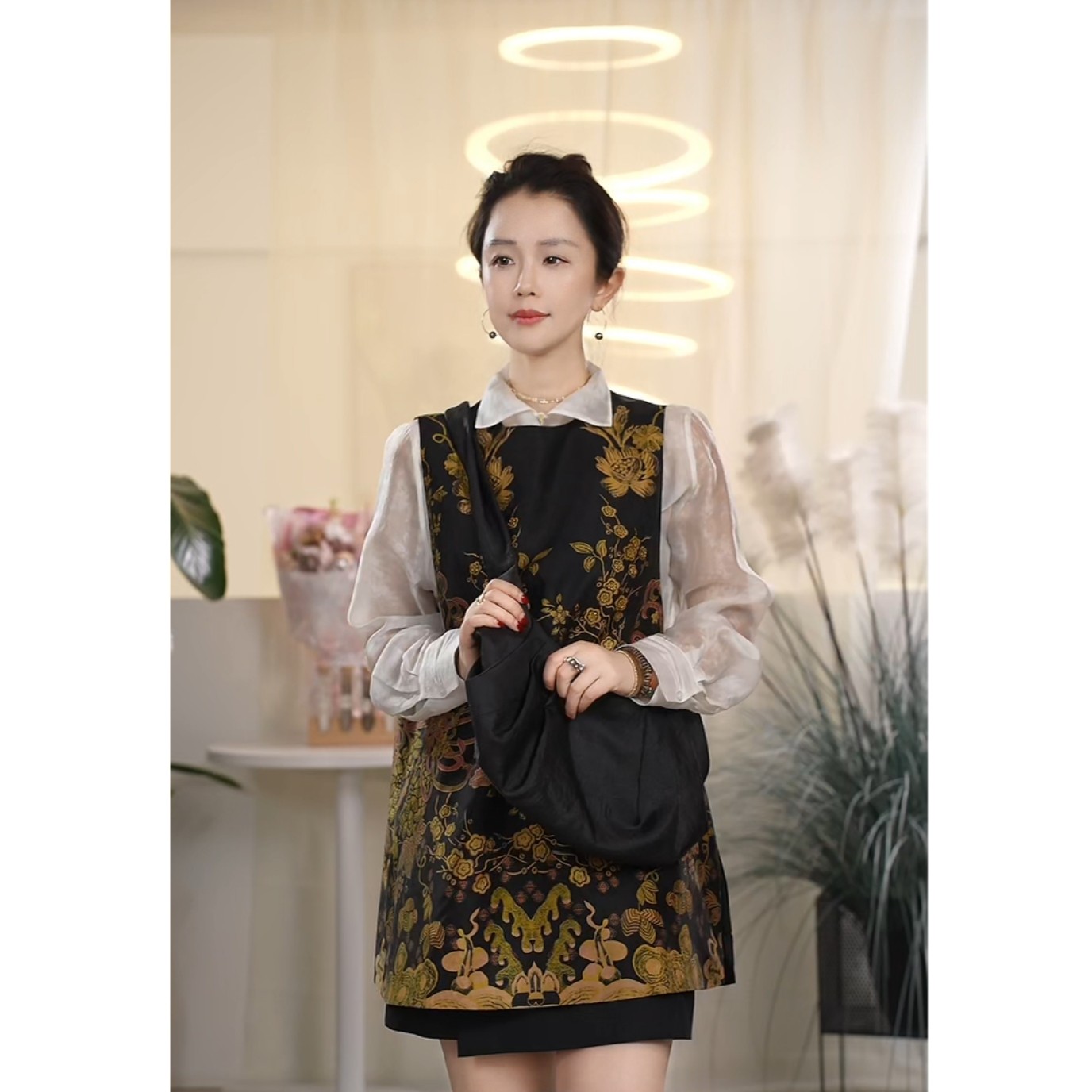 宽松马甲外套女气质百搭 桑蚕丝重工提花鎏金无袖 叭哒不惑