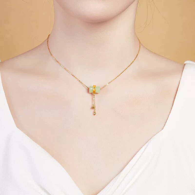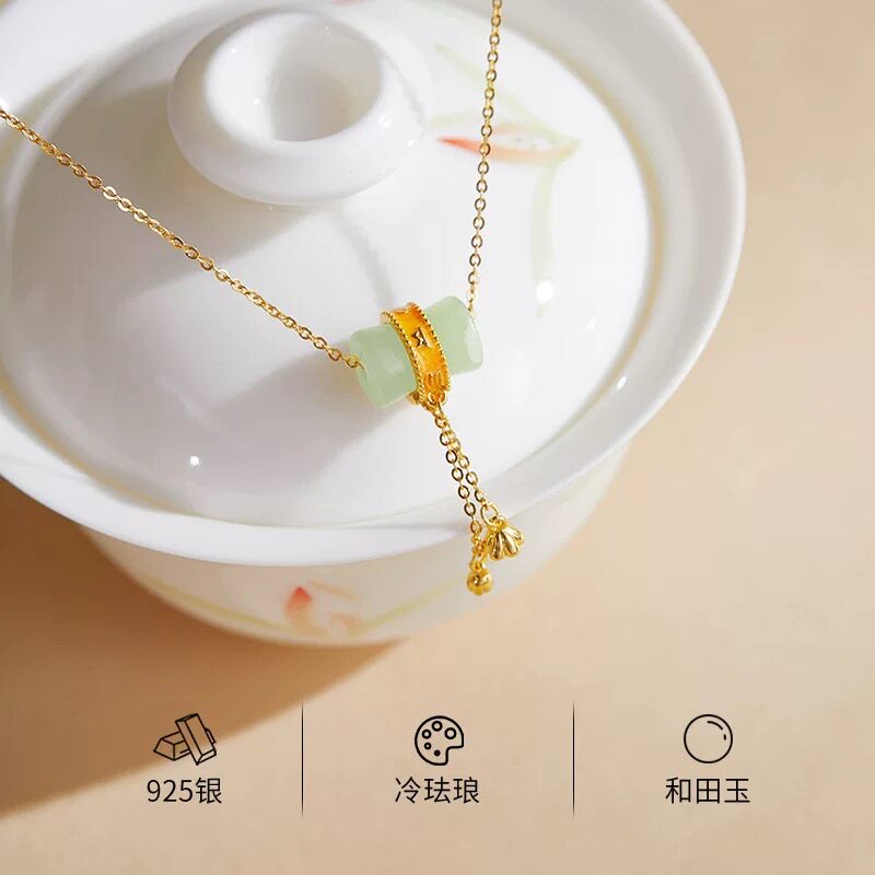 龙星惜上新中式 天然和田玉吊坠项链女S925纯银莲蓬设计感流苏