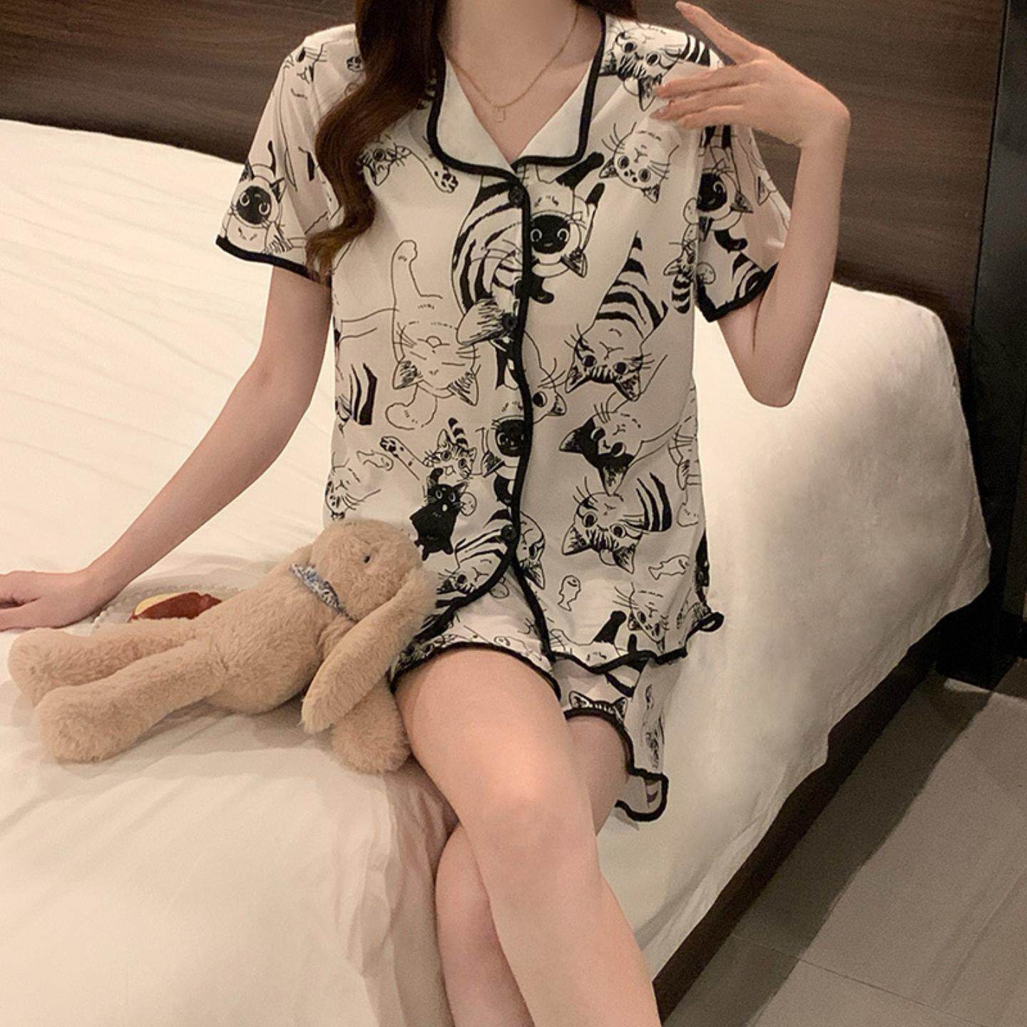 家居服套装 青年自带裸感胸垫甜美气质休闲时尚 睡衣女夏季 爆款