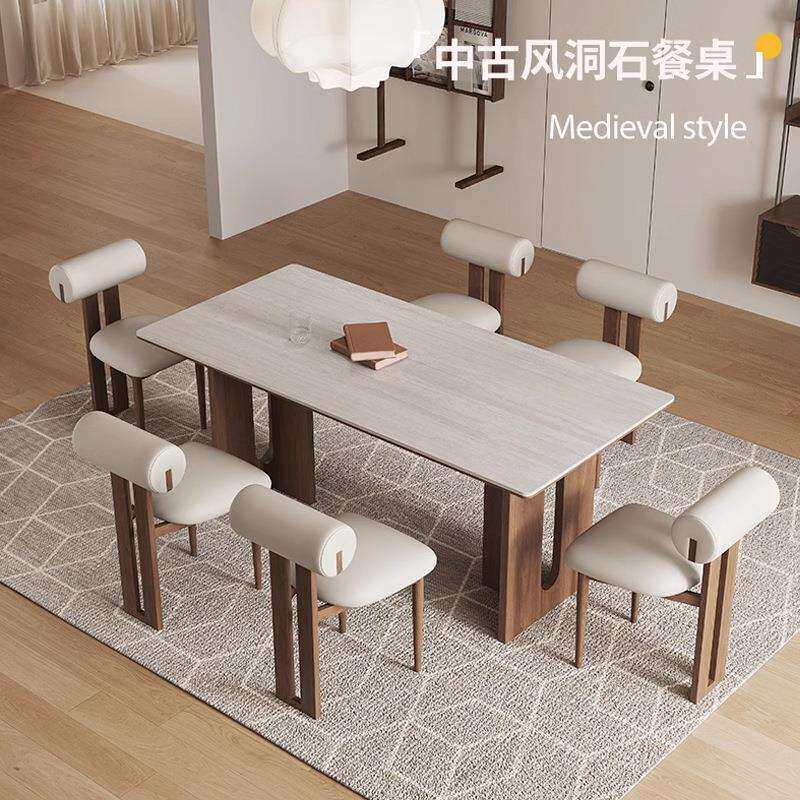 实木微晶石餐桌轻奢高端全屋搭配餐厅圆桌浅色系列轻奢餐桌椅组合