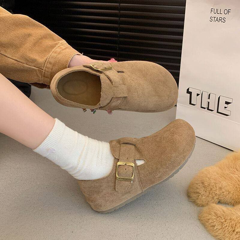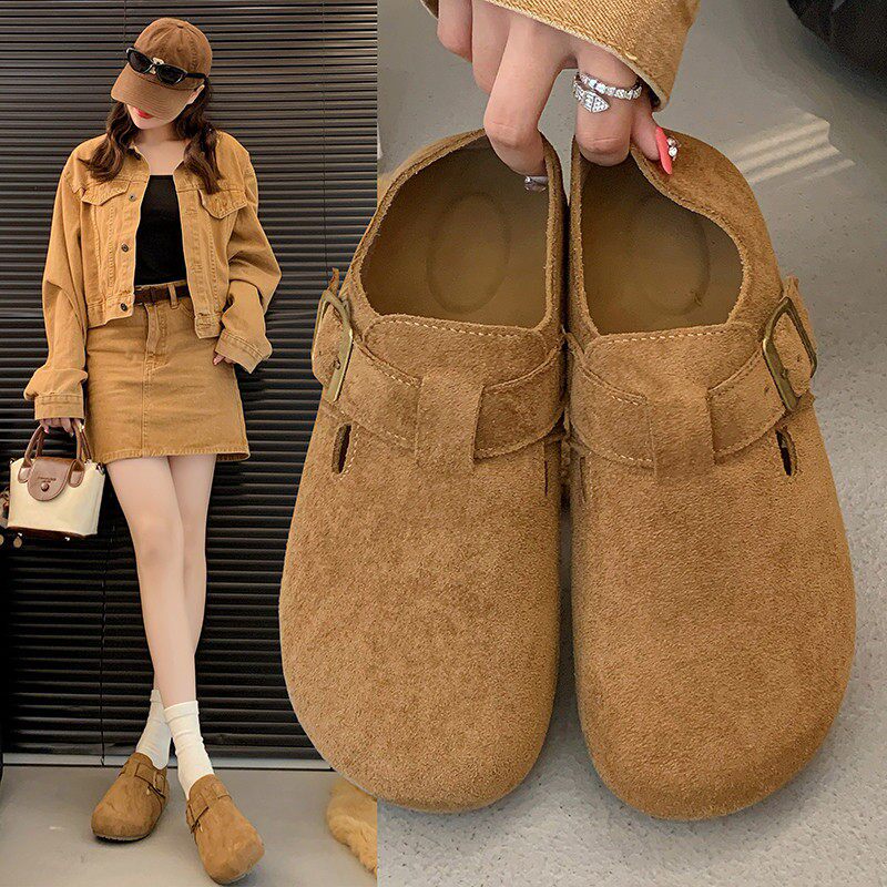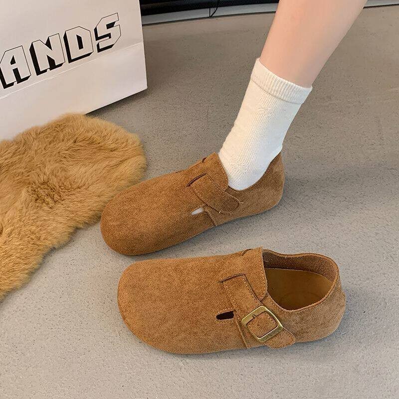 两穿复古休闲懒人一脚蹬博肯单鞋 厚底全包勃肯鞋 女2026春夏新款