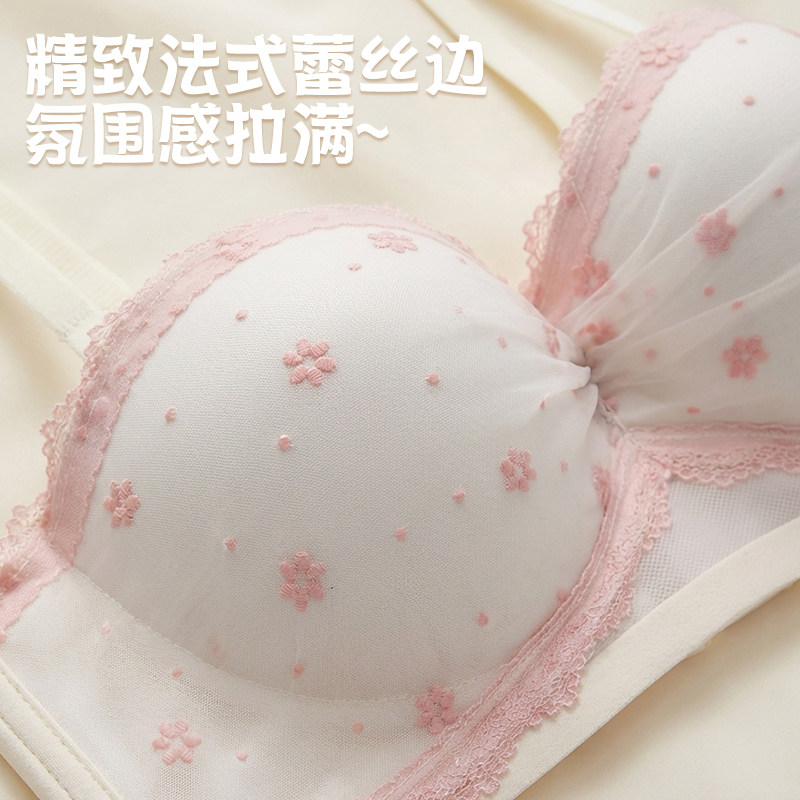 白色蕾丝抹胸内衣肩带可拆卸小胸聚拢半杯文胸薄款 TheGreenParty