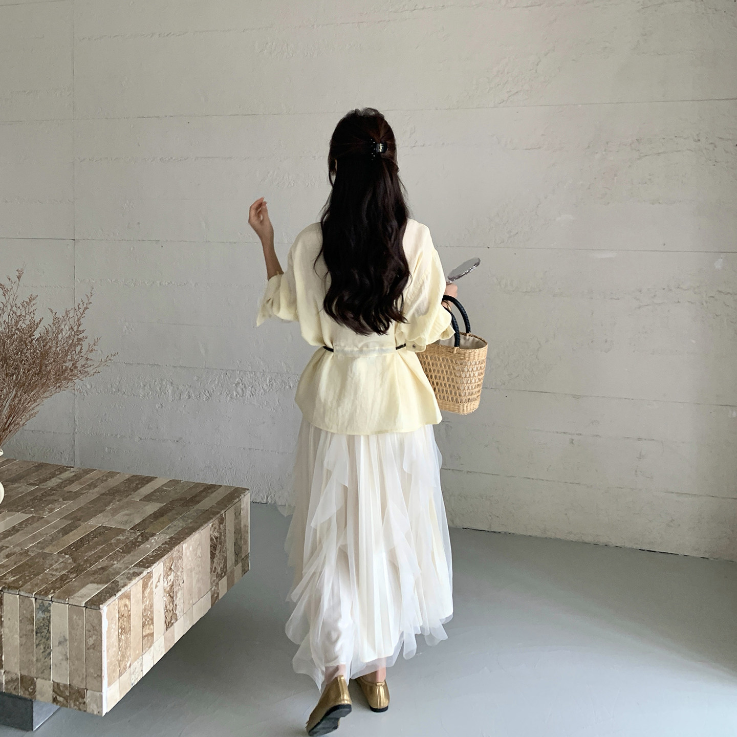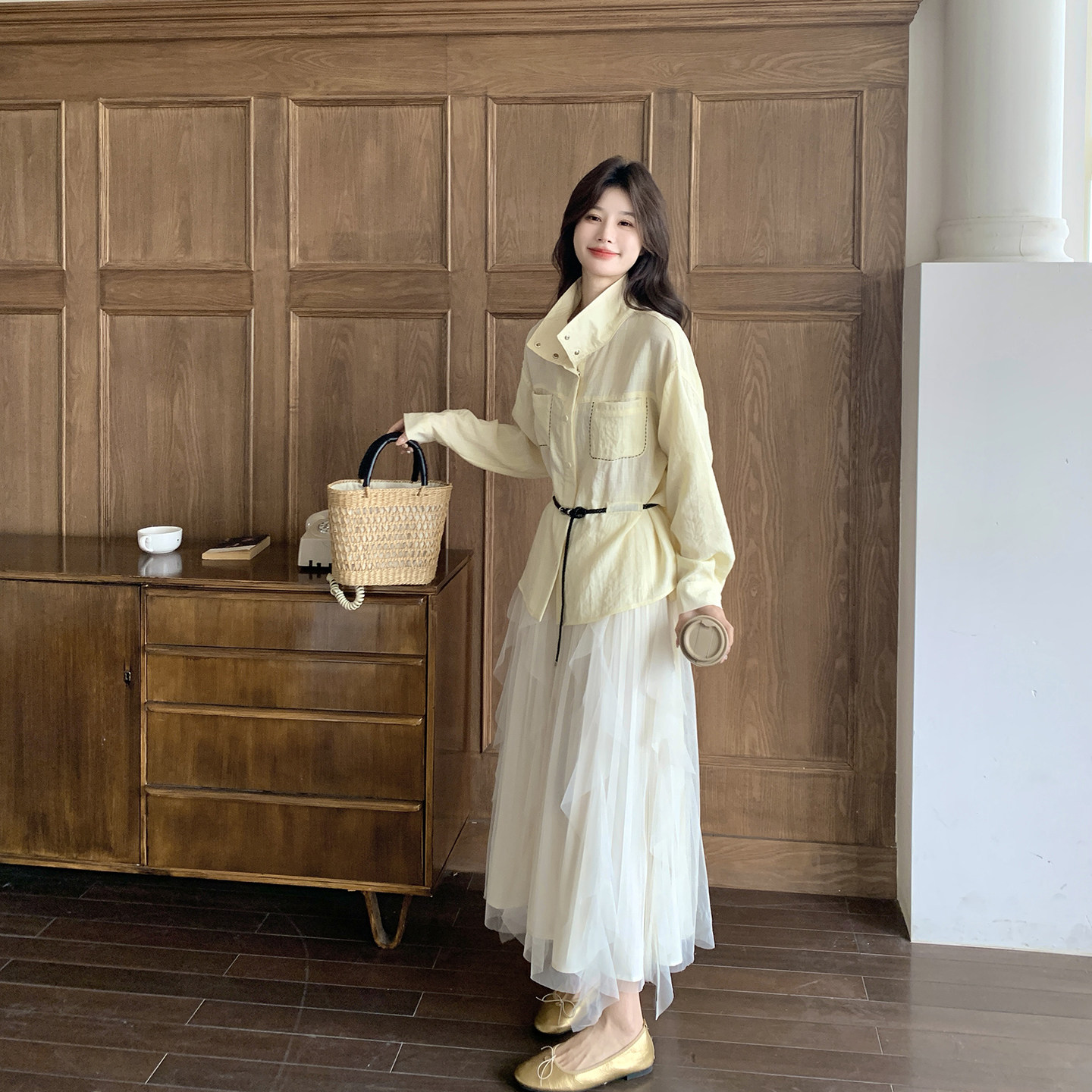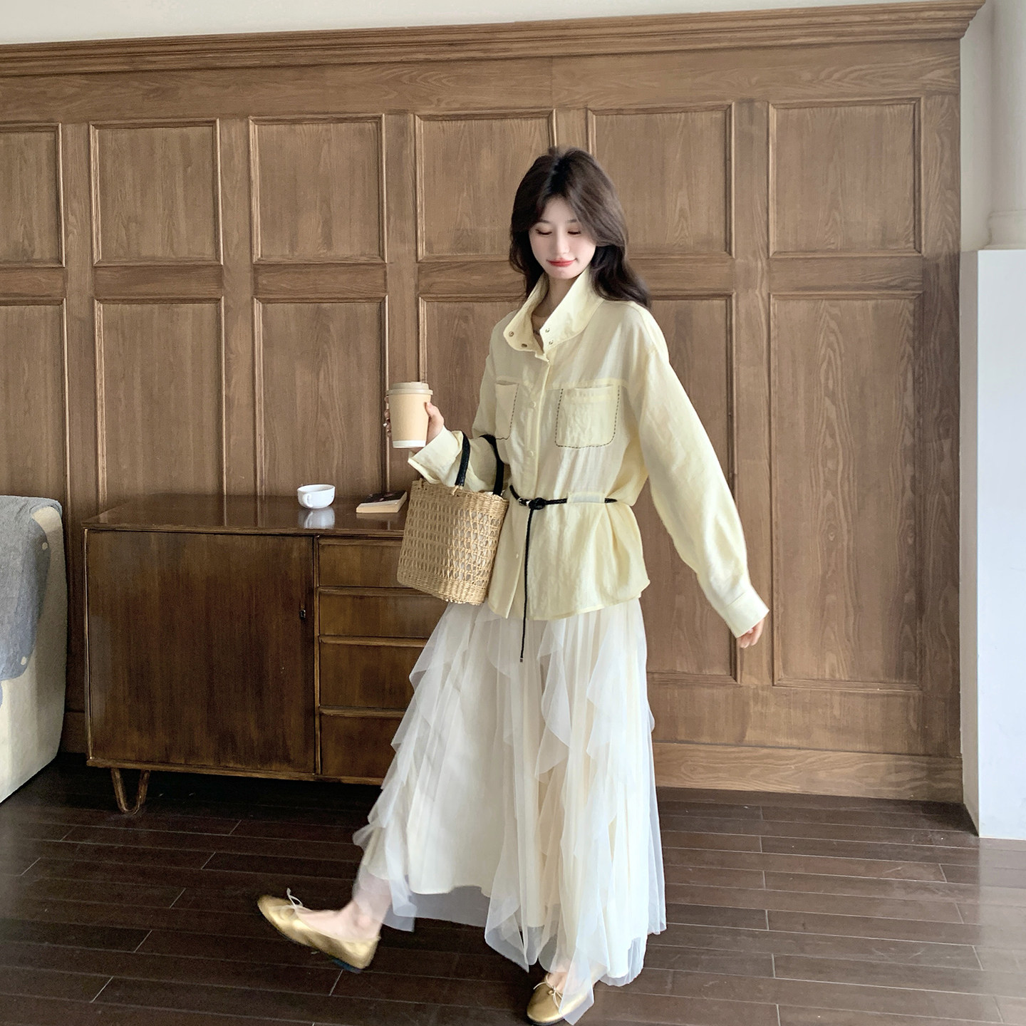 2026新款 女春季 甜美网纱半身裙两件套 套装 淡人高知穿搭一整套衬衫
