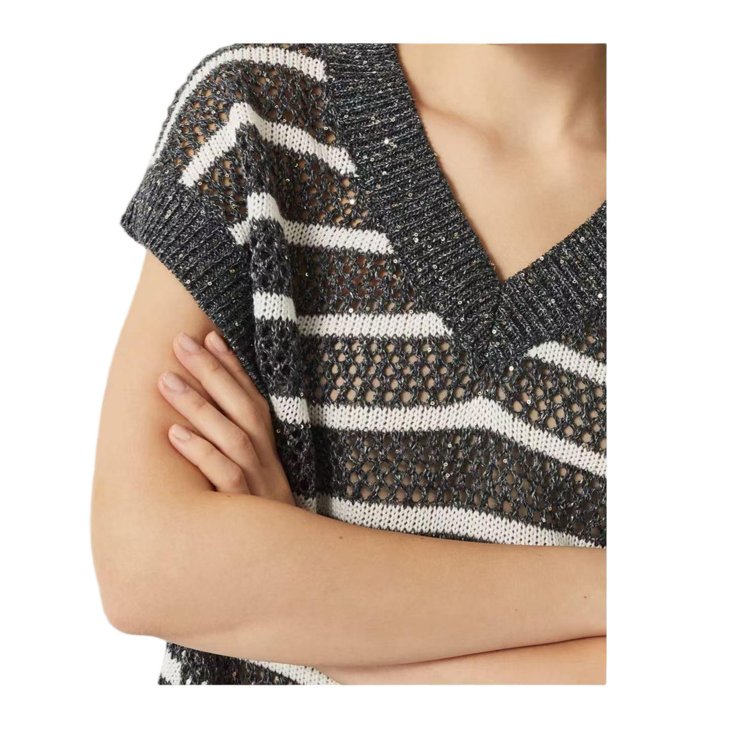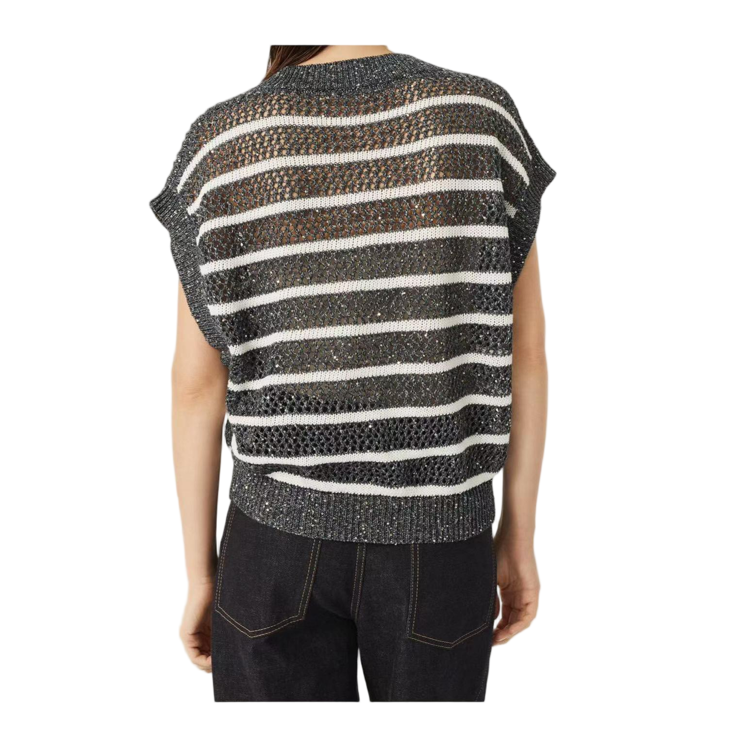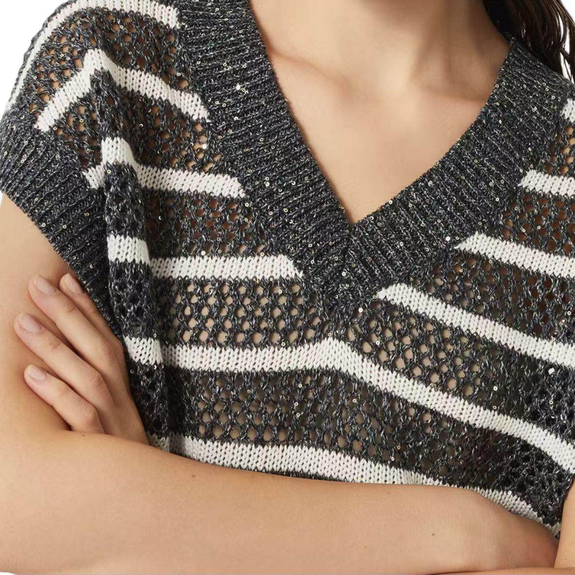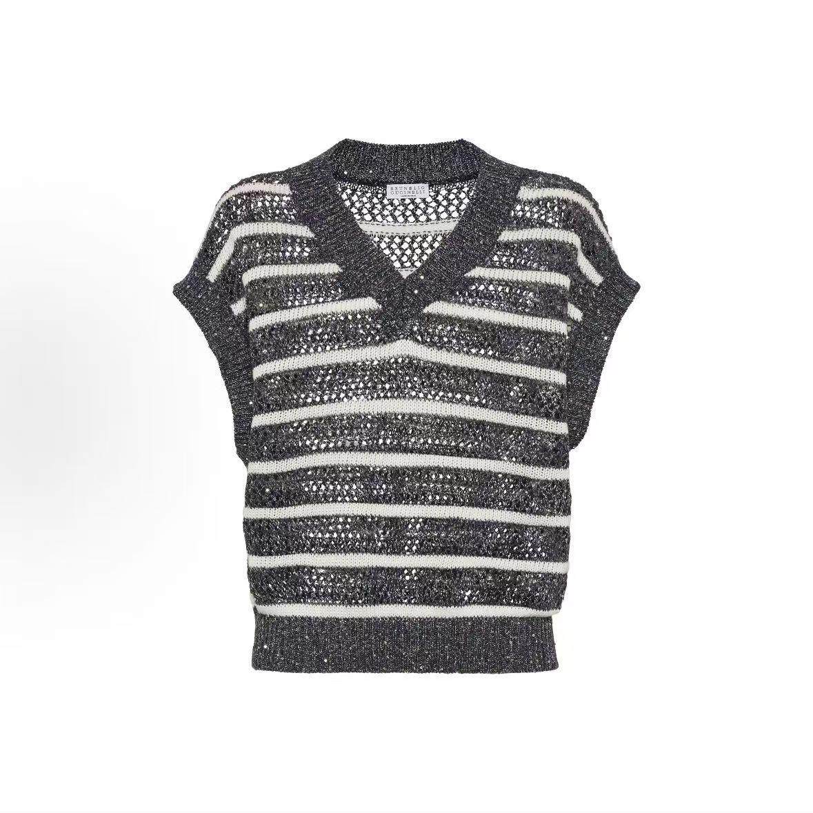 女士条纹针织背心银泰 新款 Cucinelli 301574 Brunello
