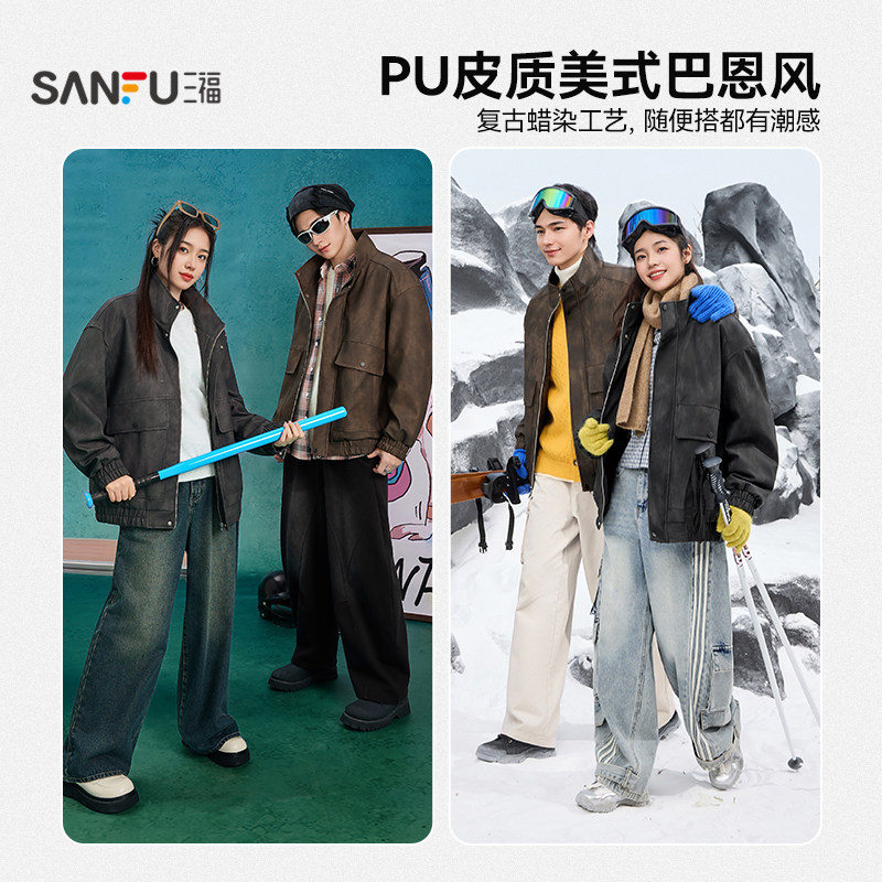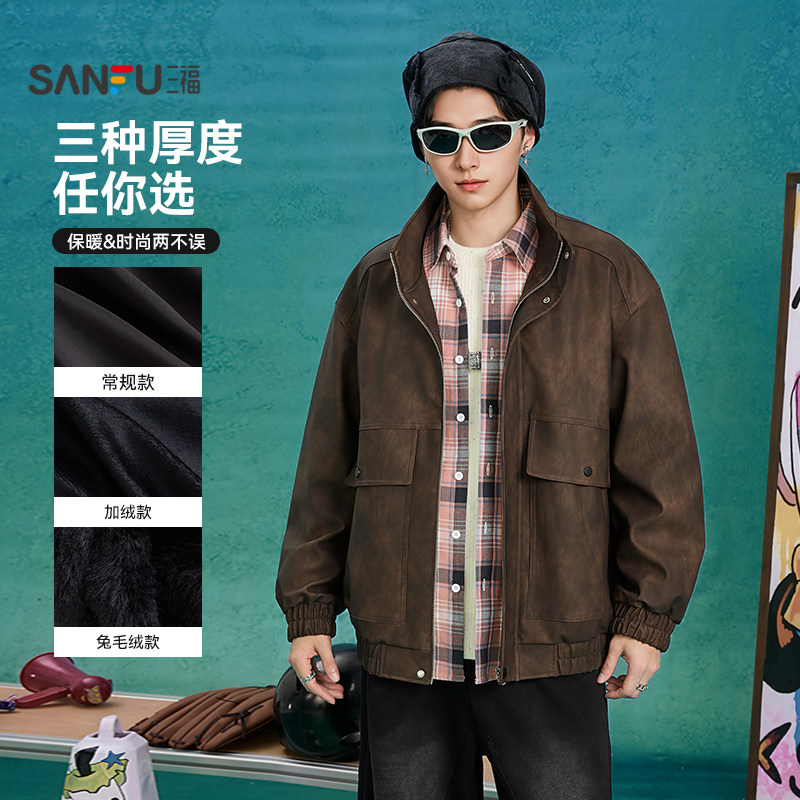 复古外穿翻领夹克男装 休闲重磅美式 潮秋冬季 加绒加厚牛仔外套男款