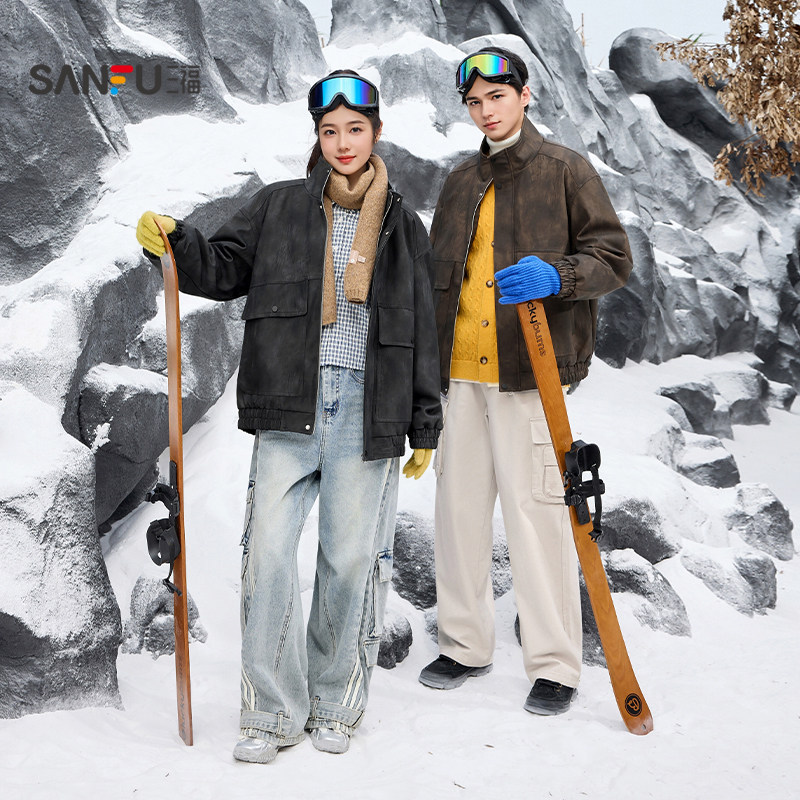 夹克潮 阿美咔叽工装 美式 复古水洗蓝色加绒牛仔外套男2025秋冬新款