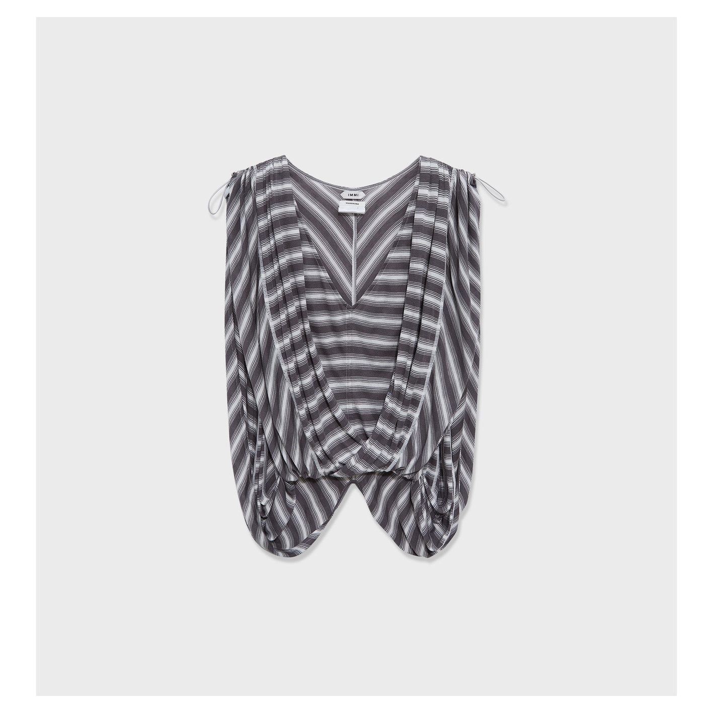 300124 女士天丝条纹V领系带背心银泰百货 设计师品牌 IMMI