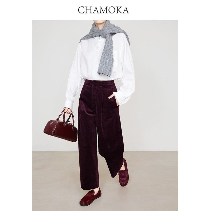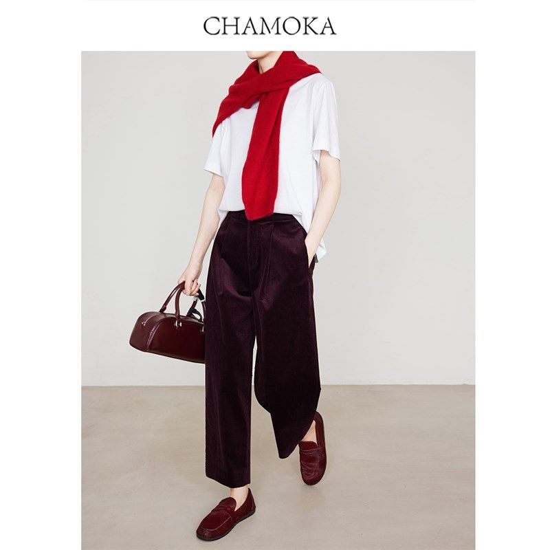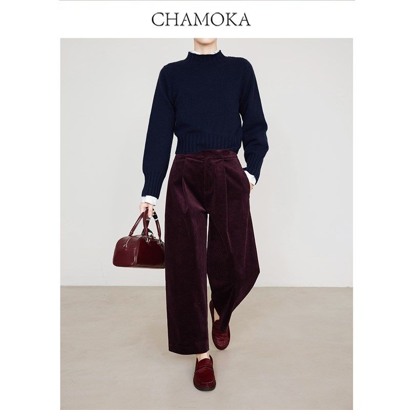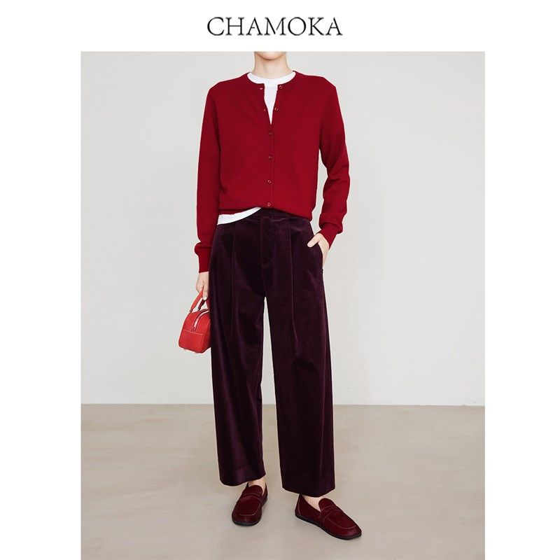 7795 显瘦九分裤 夏莫卡安可拉红灯芯绒休闲裤 子女春秋厚宽松阔腿裤
