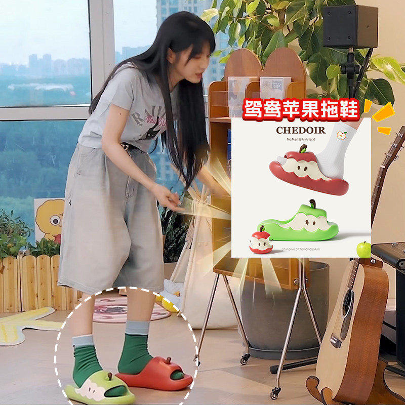 女夏季 正版 可爱洗澡防滑居家防滑外穿 chedoir苹果拖鞋 田曦薇同款