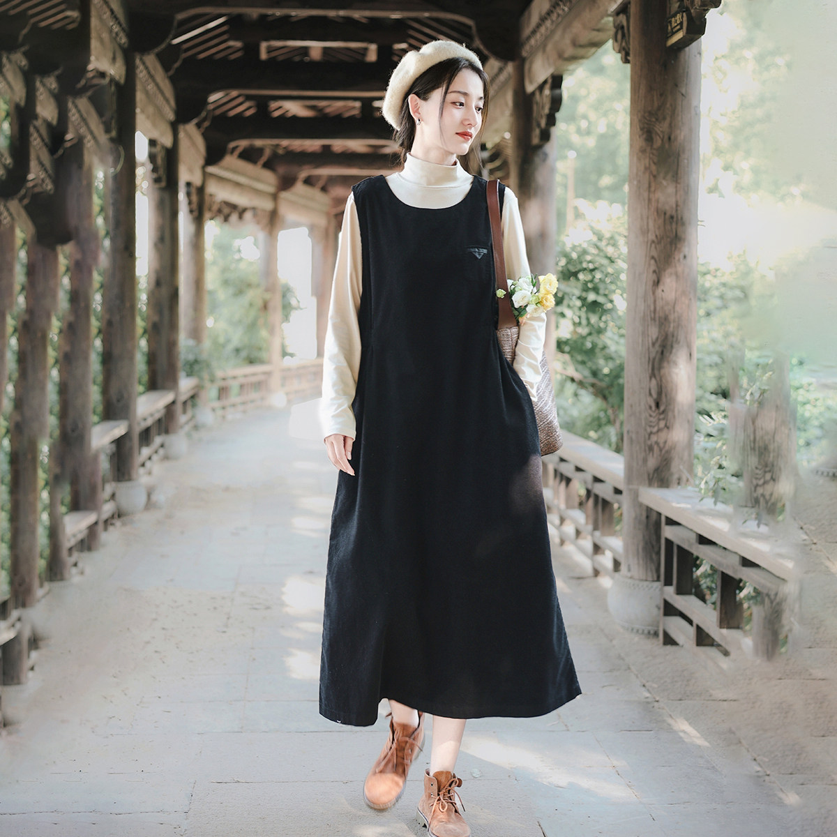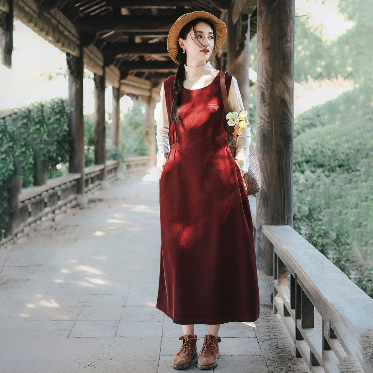 2026秋冬新款 连衣裙 背心裙灯芯绒背带裙复古气质长裙女士收腰长款