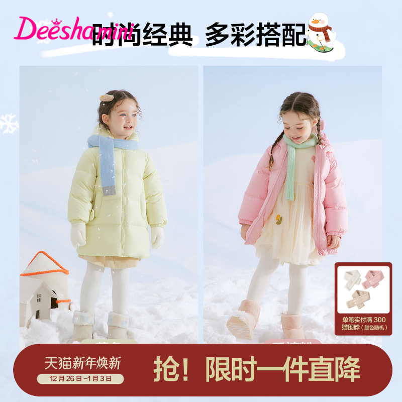 宝宝儿童蓄热三防外套 新款 笛莎官方旗舰童装 女童中长羽绒服秋冬季