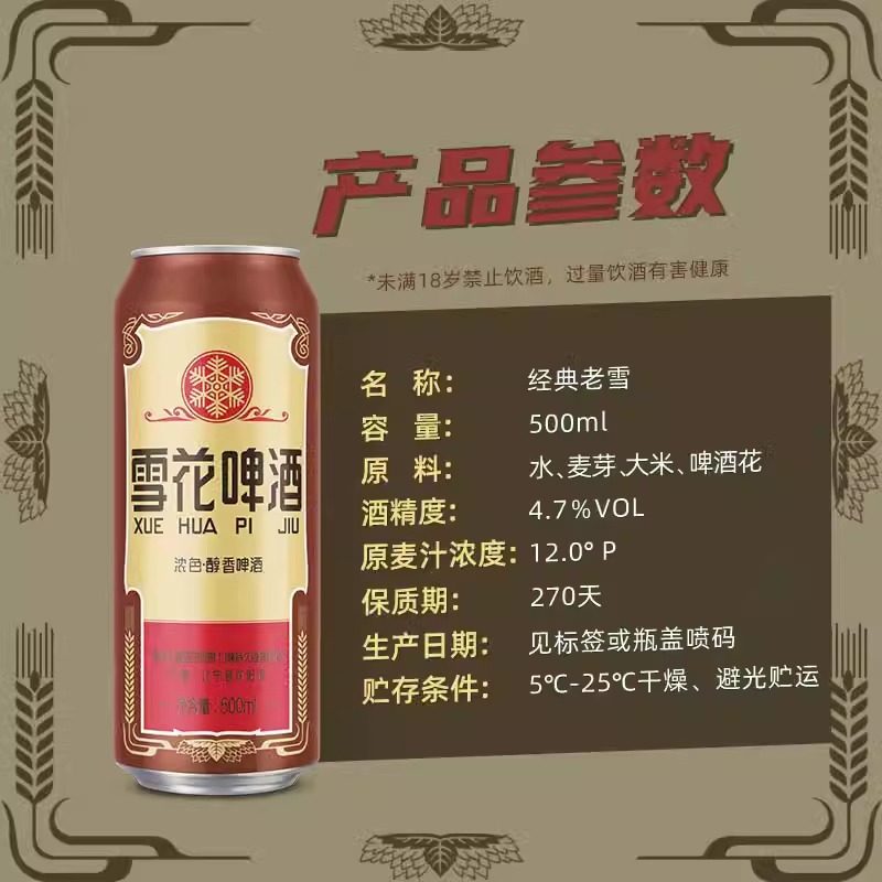经典 听装 沈阳老雪花500ml 8罐装 非原箱夺命12度 雪花啤酒