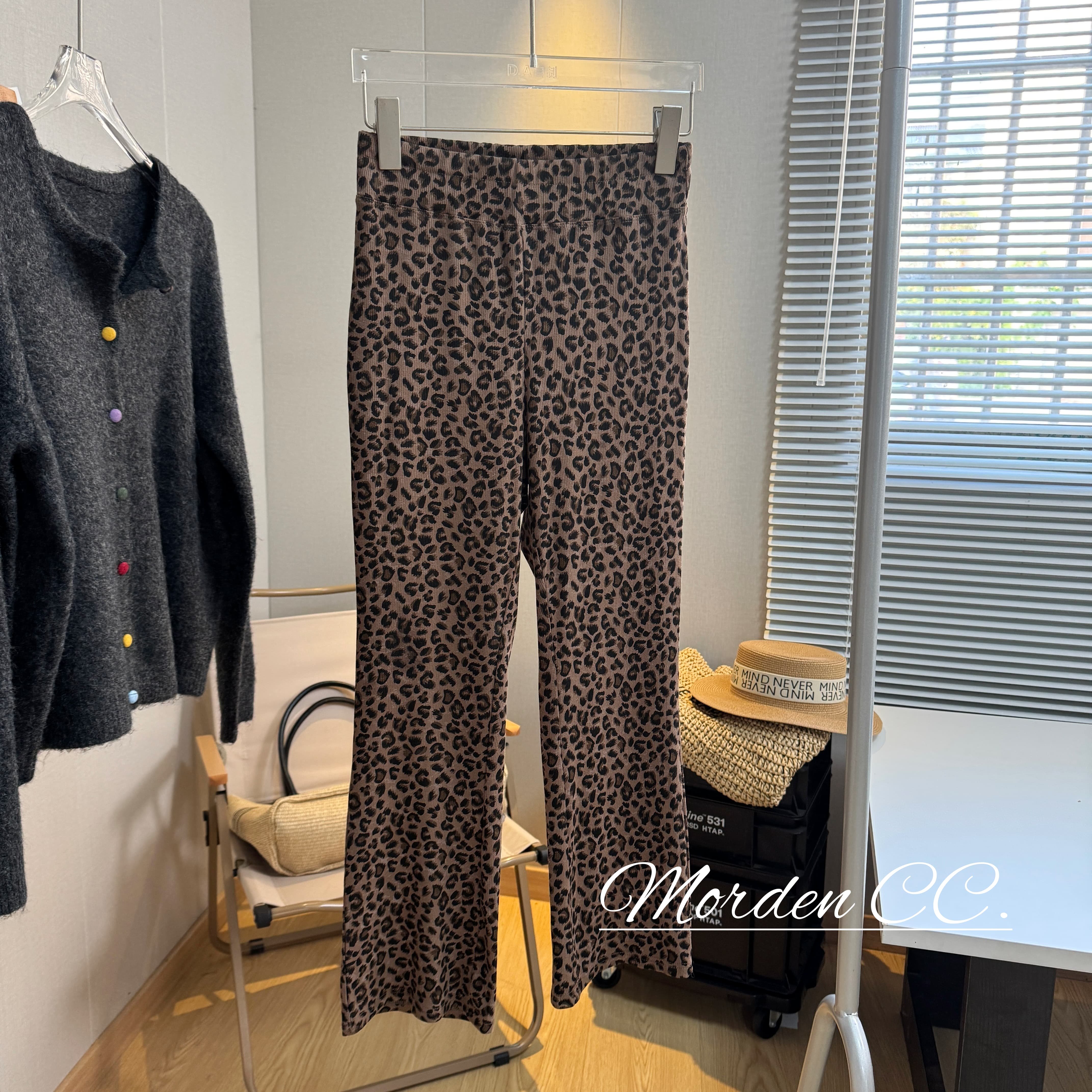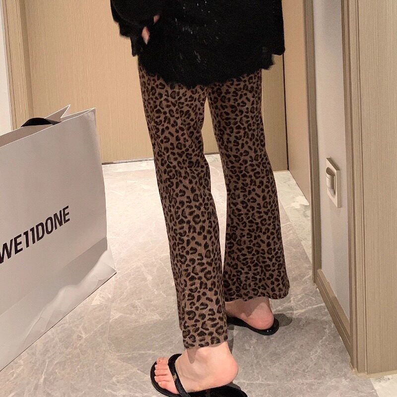 显瘦微型喇叭裤 女初夏垂感裤 小众火辣风复古豹纹裤 早春轻薄款